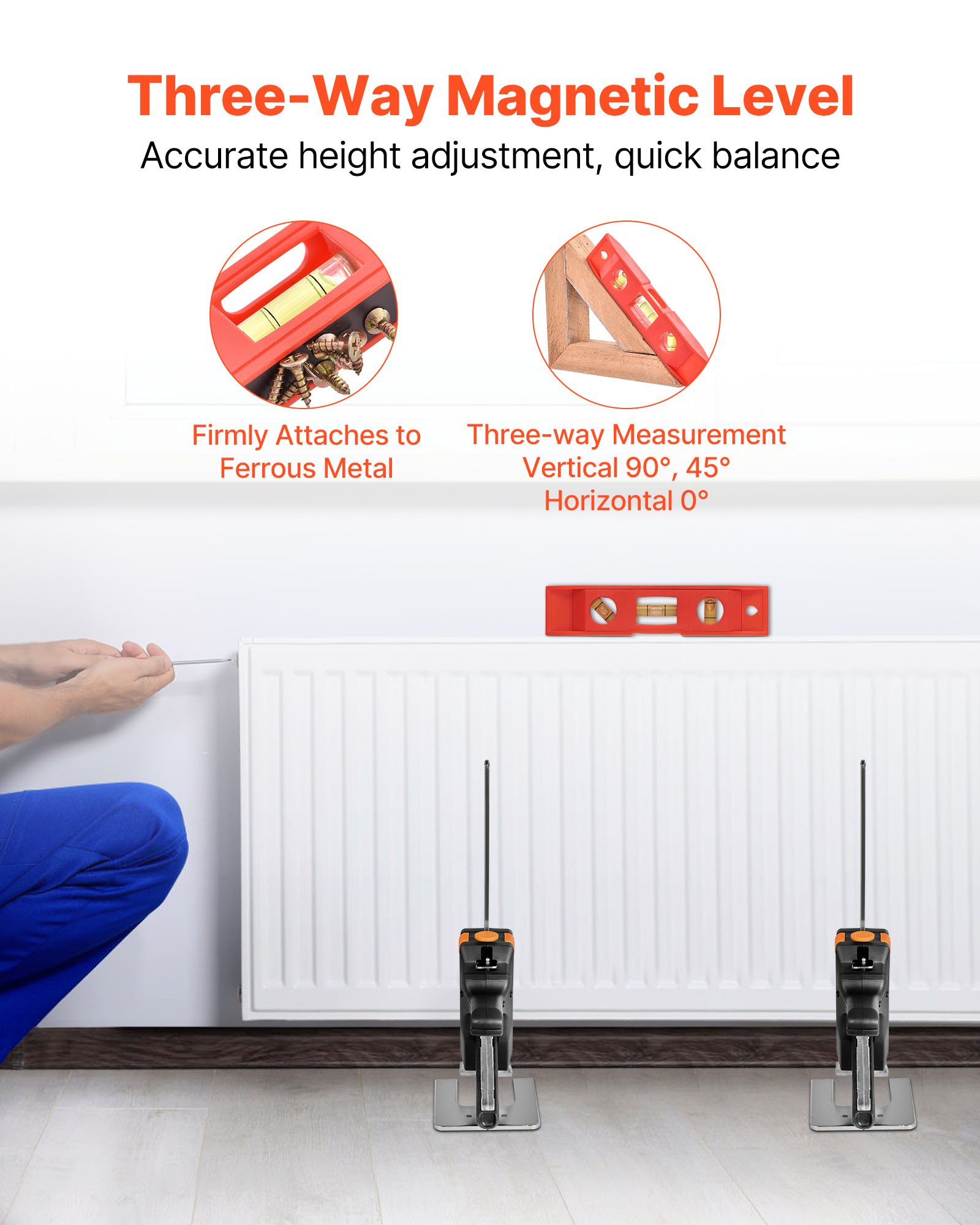 VEVOR dizalice za uštedu rada, pakiranje od 2 komada, nosivost 200 kg, podizanje do 195 mm, ručni alat za podizanje s magnetskom libelom, 2 načina podešavanja, za vrata, prozore, namještaj, obradu drveta, crna