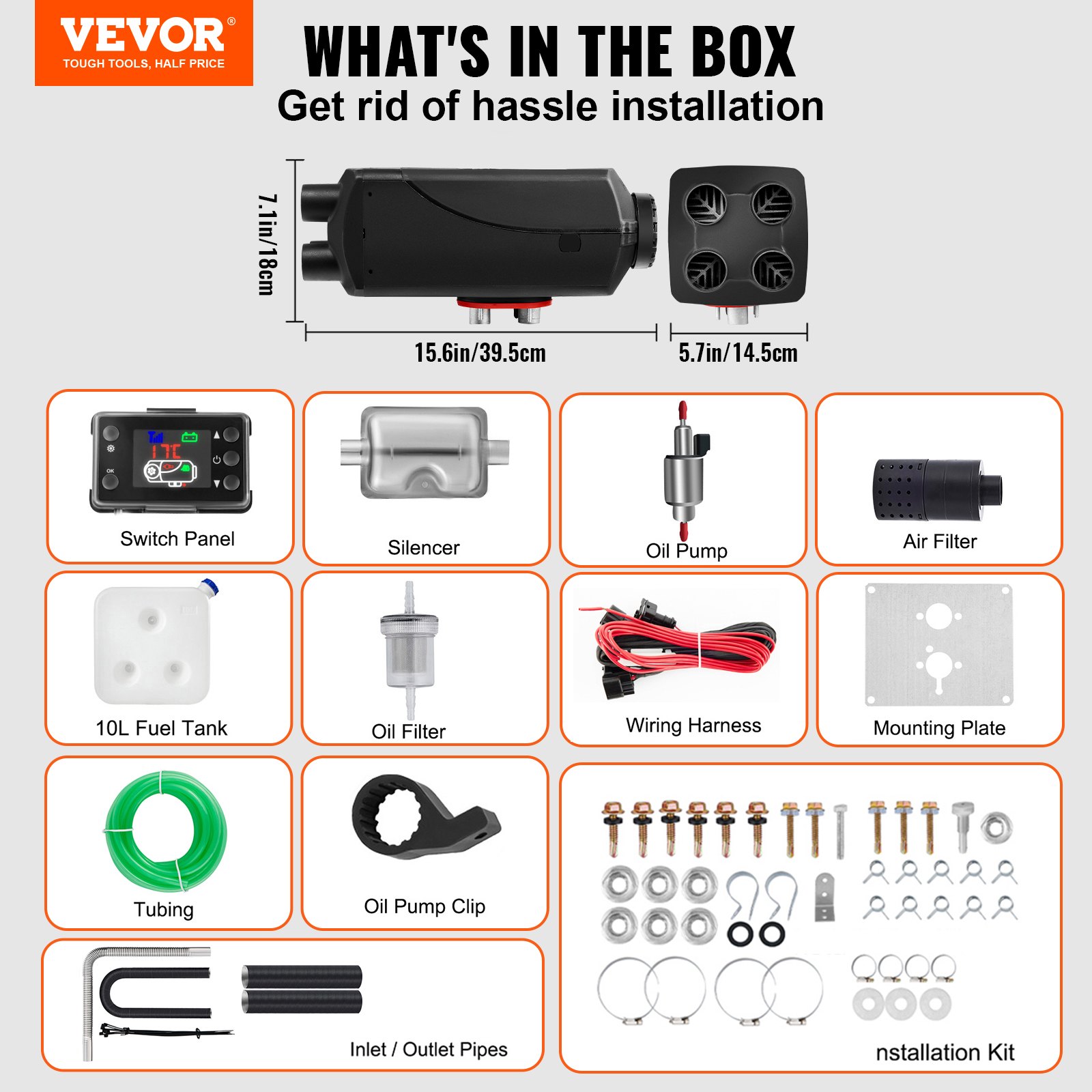 VEVOR dizelski grijač zraka 5-8KW, zračni dizelski grijač 12V, zračni parkirni grijač 39×11,5×14,5cm, dizelski parkirni grijač, zračni dizelski grijač, za grijanje vozačke kabine automobila, autobusa i kampera