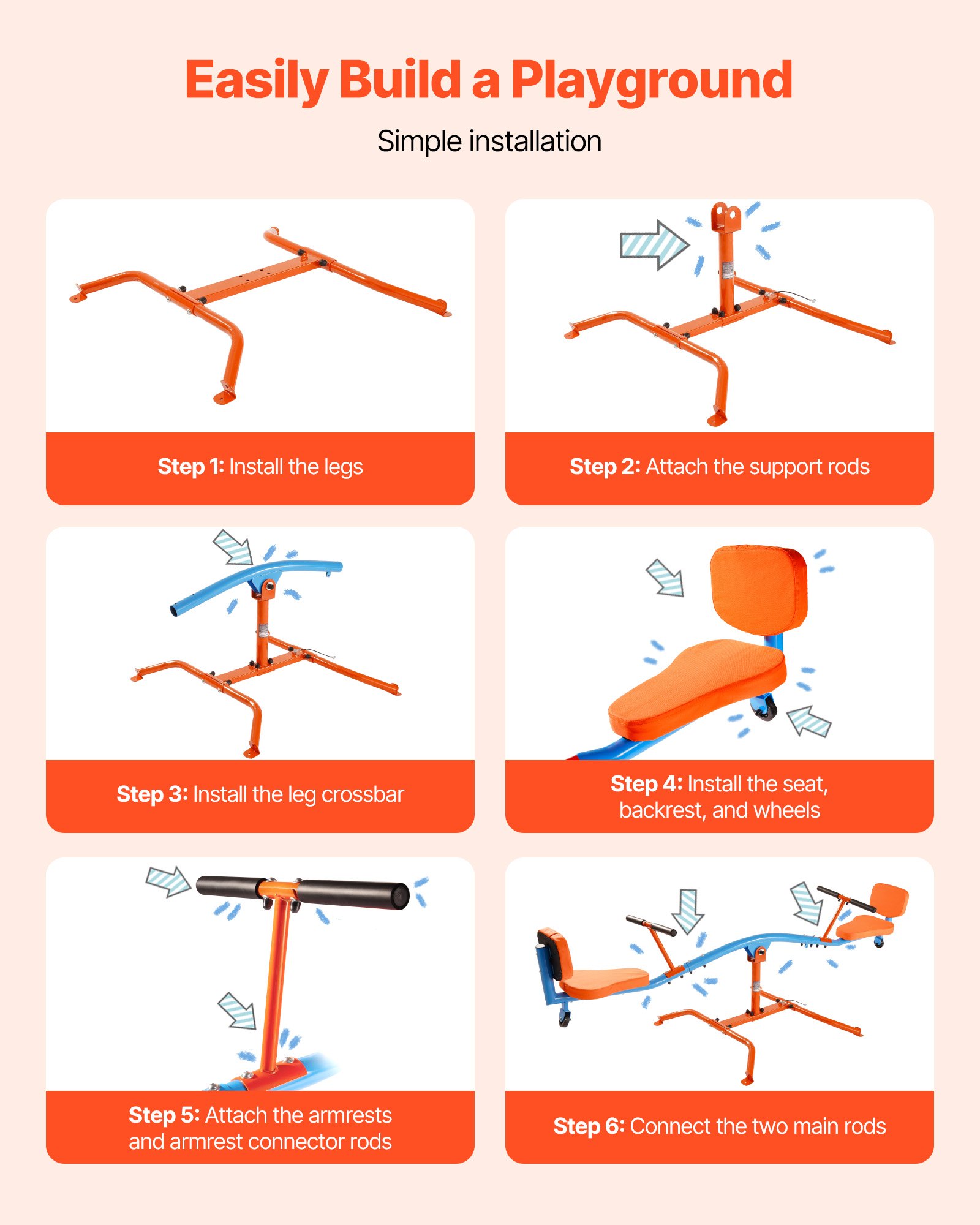 VEVOR Dječja klackalica 2640 x 930 x 710 mm, Klackalica nosivosti 136 kg, Vrtna klackalica s ručkama, Njuljačka klackalica, Vrtuljačka klackalica za vanjsku upotrebu, Rotacija od 360 stupnjeva, Igračka za djecu od 3 godine i stariju