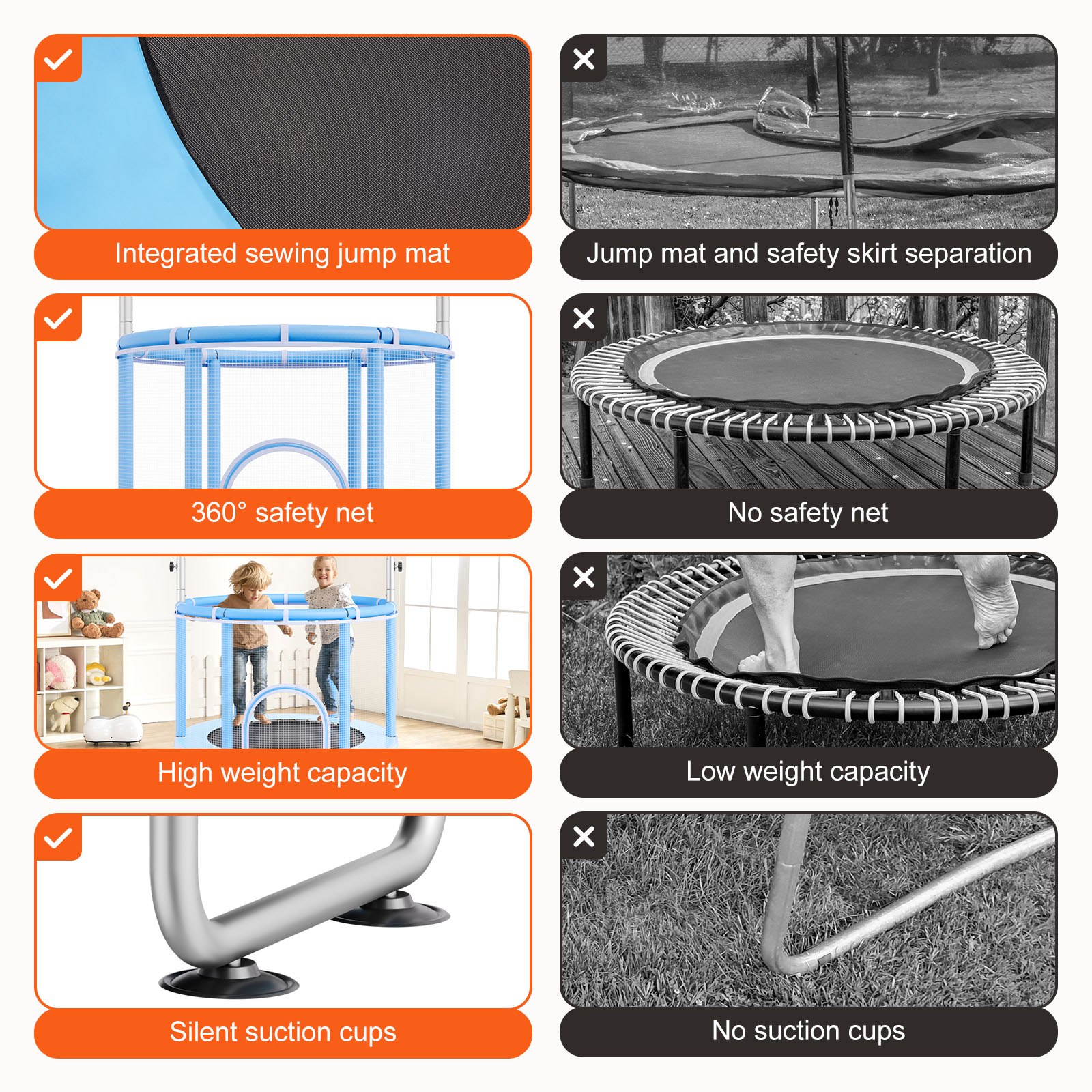 VEVOR dječji trampolin, mini rekreacijski trampolin, 147 cm za malu djecu sa sigurnosnom mrežom i košarkaškim košem, rođendanski poklon, božićna igračka za djecu od 3 godine i više, plava