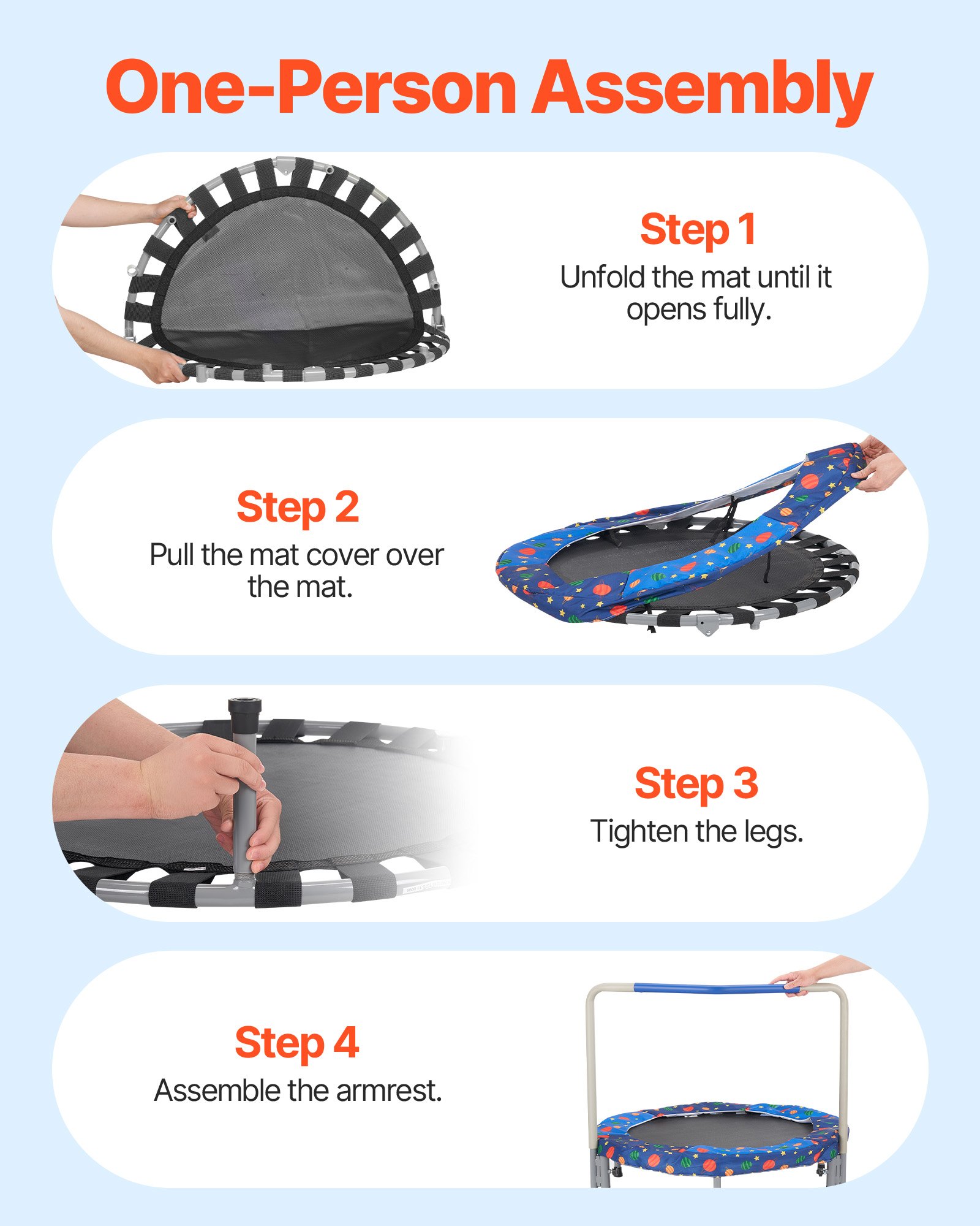 VEVOR Dječji trampolin Vanjski trampolin 91,44 cm Sklopivi trampolin s ručkom, Vrtni trampolin s odskokom za malu djecu, Rođendanski poklon za djecu od 3 godine i više, Nosivost 100 kg, Plava