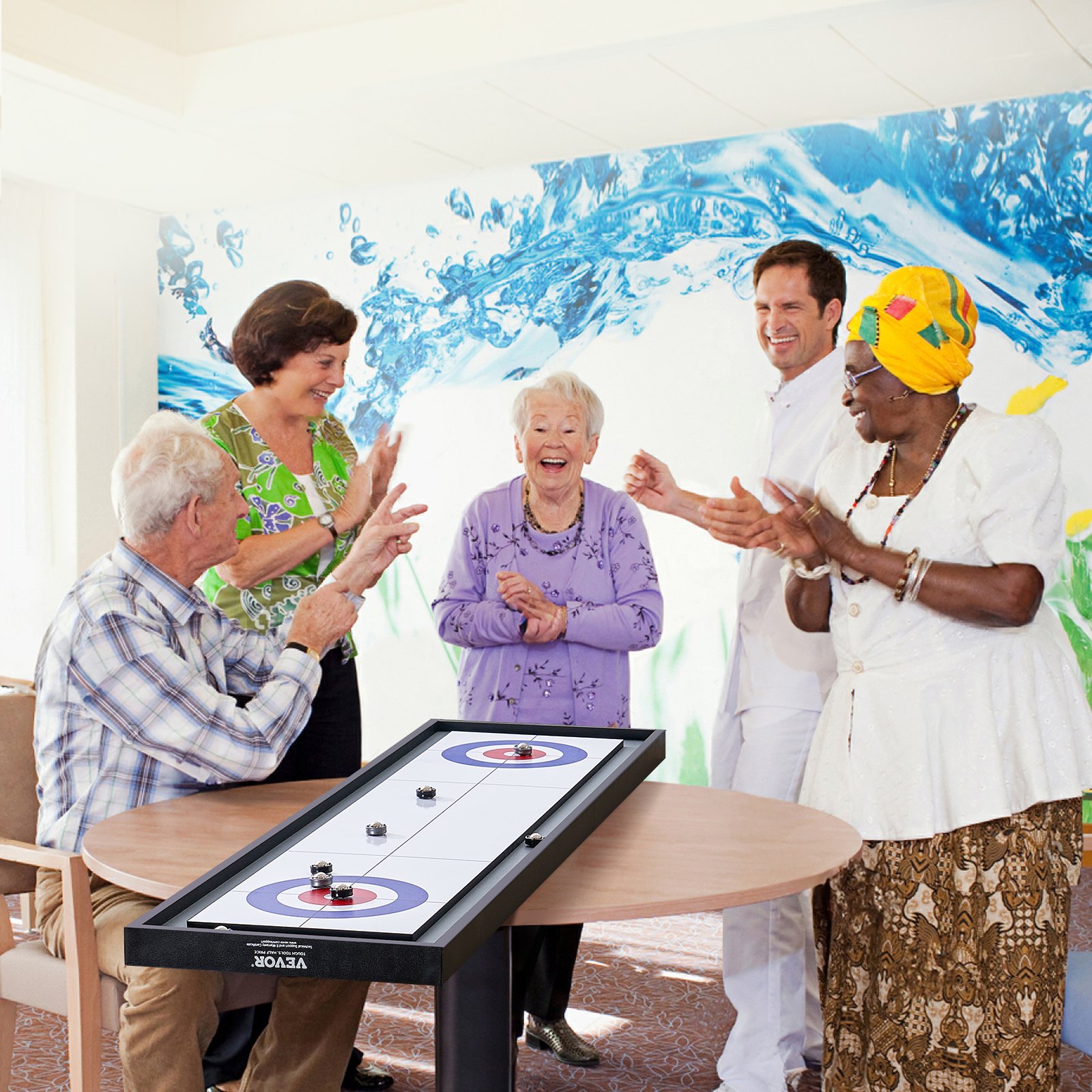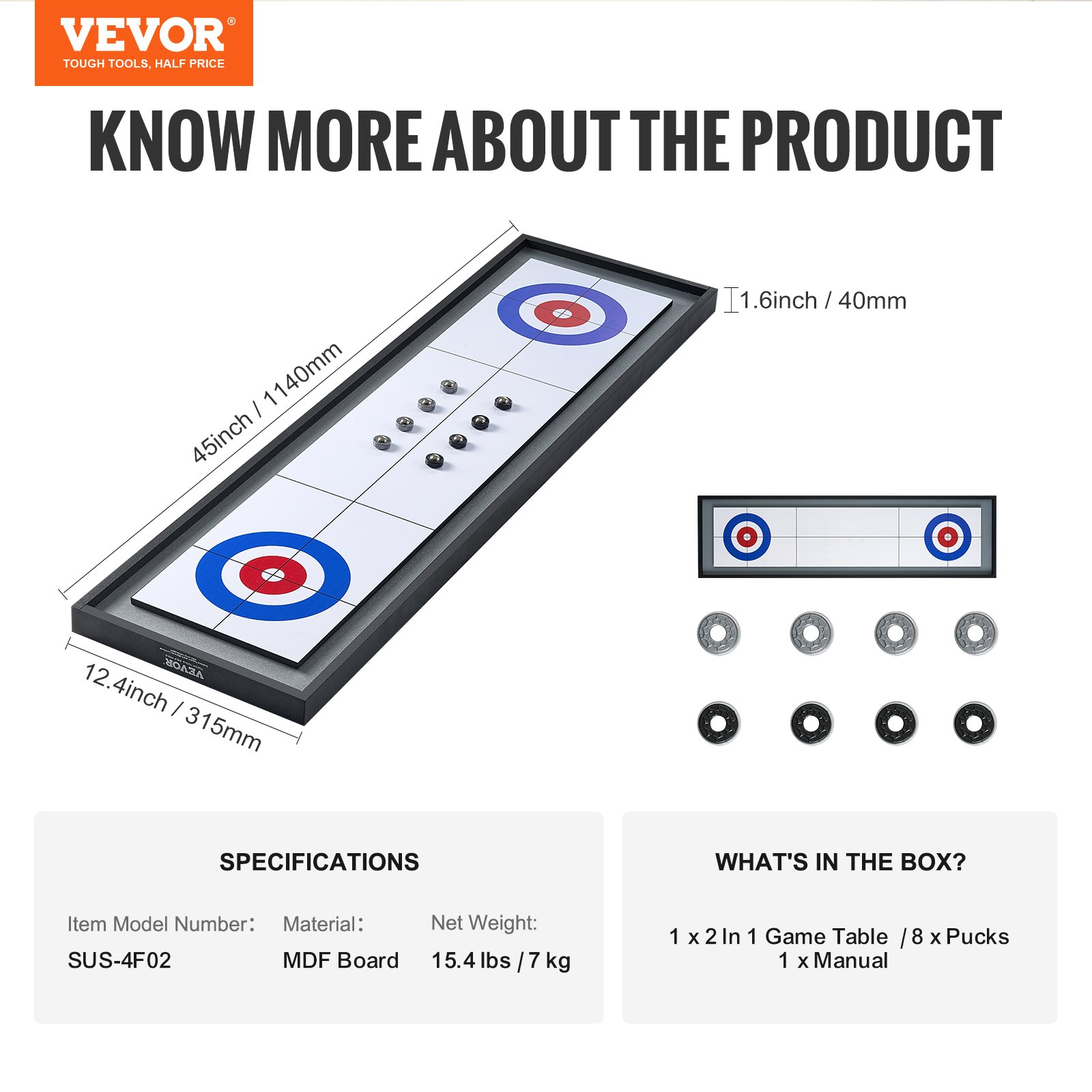 VEVOR Društvena igra 2 u 1 za shuffleboard i curling, prijenosni stolni set od 45 inča, dvostrani stolni shuffleboard s 8 kotrljajućih pakova, set za igru shuffleboard i curling za djecu i obitelji