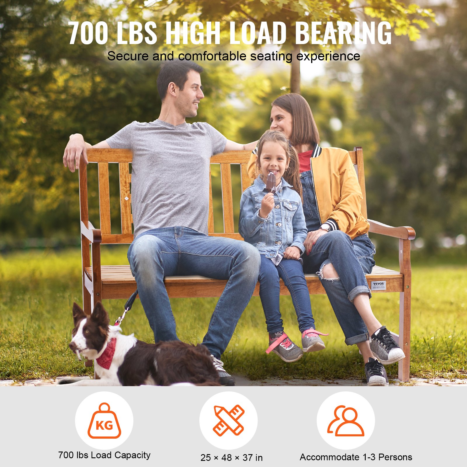 VEVOR Drvena vrtna klupa, klupa za terasu, klupa za park 122 cm, klupa za odmor, nosivost 318 kg, vrtna i parkovna klupa za 3 osobe s naslonom i naslonima za ruke, vintage klupa za vrt, park, dvorište, trijem itd.