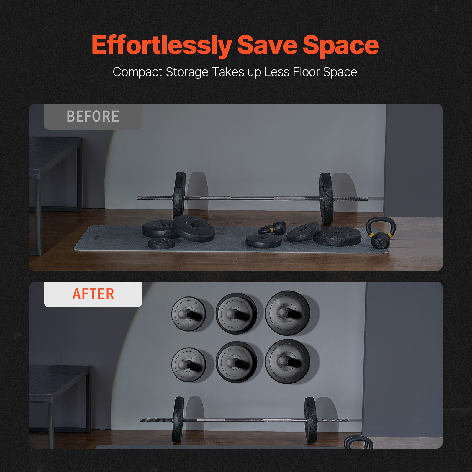 VEVOR Zidni držač za utege, stalak za šipke za utege od 2 inča, nosivost 150 kg, organizator za kućnu teretanu od željeza, uključena 4 montažna pribora