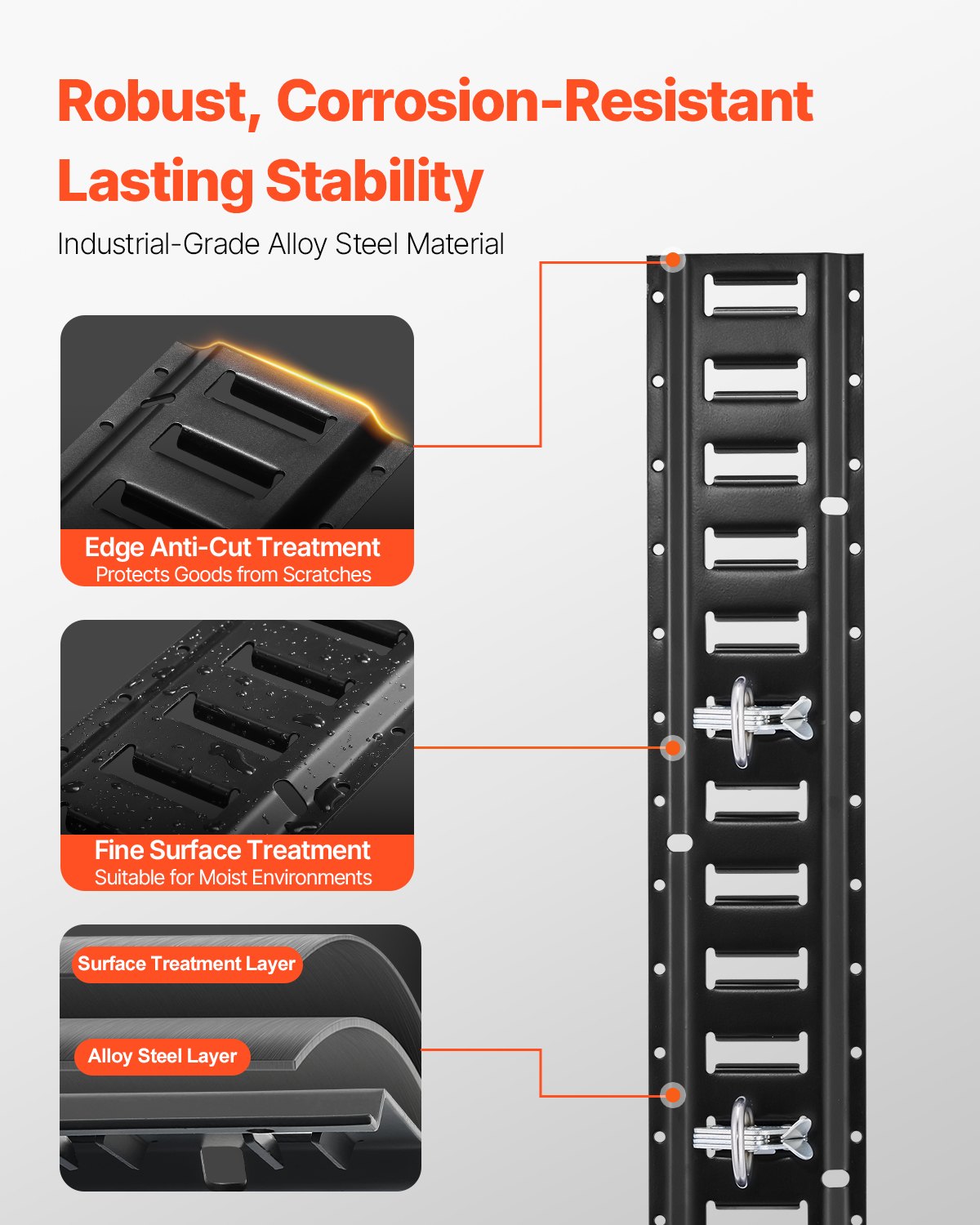 VEVOR E-Track set pričvrsnih šina, 18-dijelni, set E-Tracks 1524 mm, uklj. 4 čelične šine i 8 O-prsten sidra i 4 trake za pričvršćivanje s D-prstenom i 2 remena s račvastim zatvaračem, pribor za pričvršćivanje teretnih motocikala, 907 kg