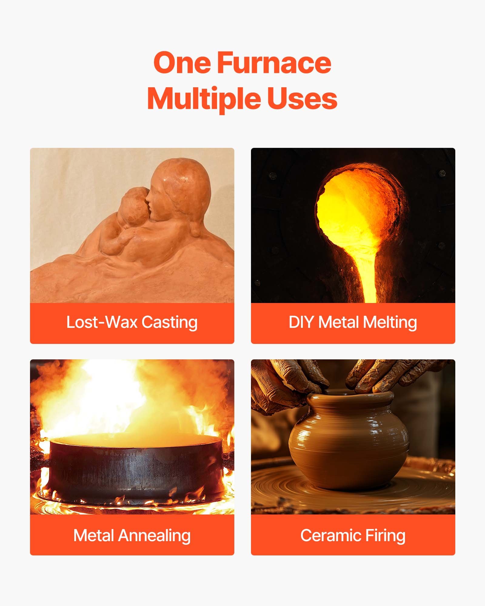 VEVOR Električna peć za taljenje 1650W Digitalna peć za taljenje, električna peć za pečenje s maksimalnom temperaturom 1200℃ za lijevanje izgubljenim voskom, DIY od gline, žarenje metala, pečenje keramike, PID kontrola temperature
