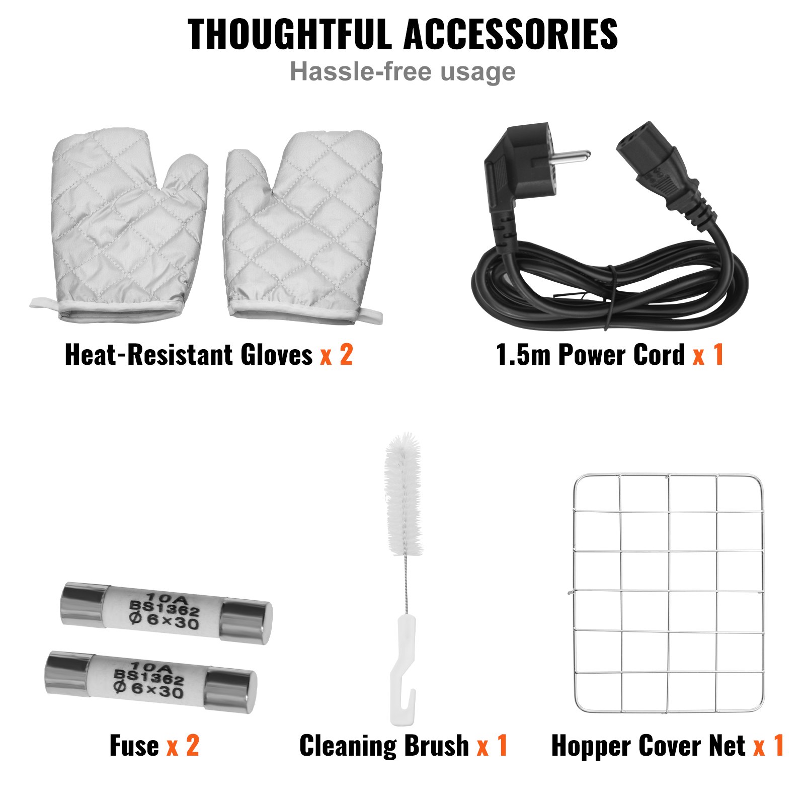 Glavni materijal: SUS304, Učinkovitost: 1,5 kg/h, Kontrola temperature: 0-300 °C / 32-572 °F, Neto težina: 10,75 kg / 23,7 lbs, Broj modela artikla: KYL-380K, Snaga: 850 W