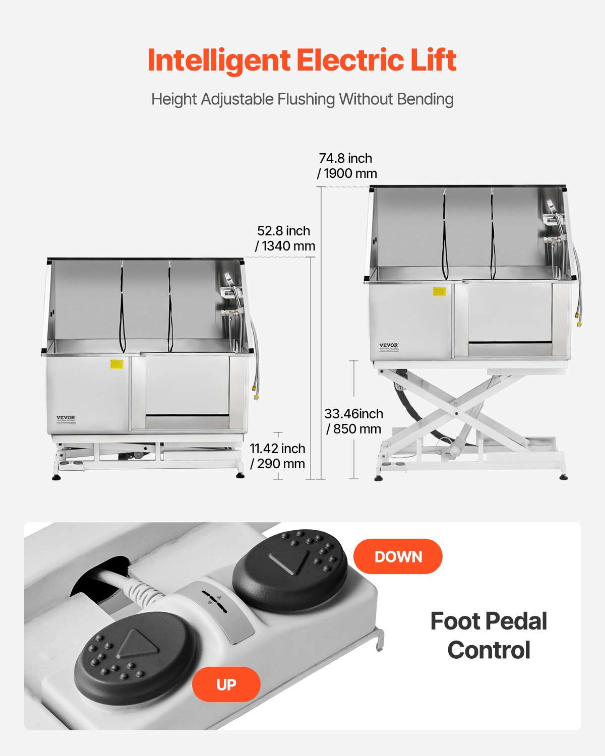 VEVOR Električna stanica za pranje pasa s funkcijom podizanja, kada za njegu kućnih ljubimaca od nehrđajućeg čelika od 127 cm s PE pločom za filtriranje vode, slavinom i tušem, kada za pse, umivaonik za kućne ljubimce (desna vrata)