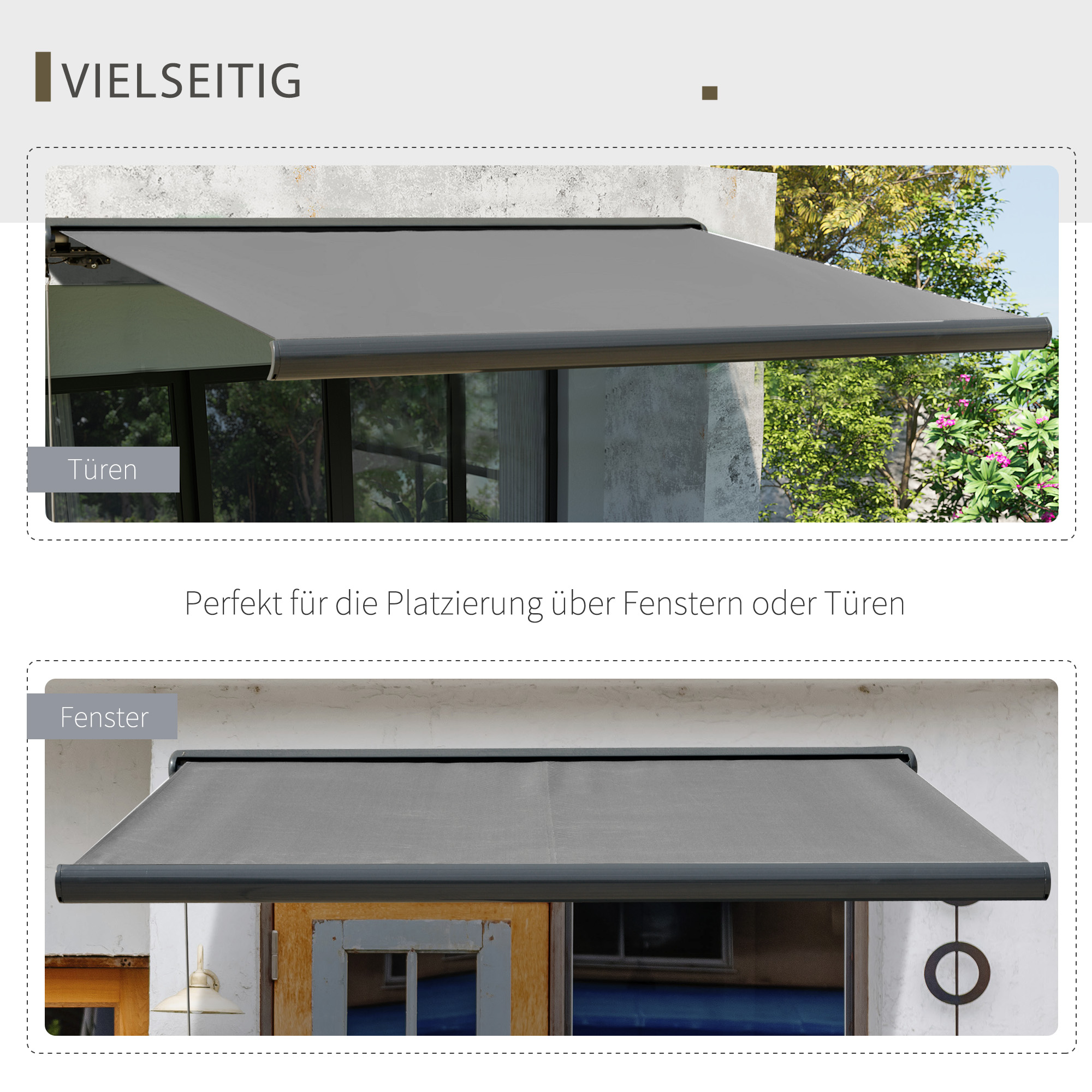 Otkrijte prednosti nose visokokvalitetne kasetne tende marke [BRAND NAME]! Zahvaljujući ojačanom okviru i obloženoj tkanini, tenda nudi izvrsnu zaštitu od sunca i vremenskih uvjeta. Povucite električnu tendu pritiskom na gumb i uživajte u ugodnom zasjenjenom mjestu na svojoj terasi, sigurno zaštićenom od topline i UV zraka. Osim Daljinskog upravljača, tenda se također može praktično ručno izvlačiti i uvlačiti. Opis: ✔ Električna tenda, idealna kao zaštita od sunca iznad vrata ili prozora ✔ Tenda se može upravljati ručno ili Daljinskim upravljačem ✔ Kasetna tenda se može potpuno uvući u kutiju kada se ne koristi ✔ Zglobne ruke su spojene dvožilnim čeličnim kabelom ✔ Aluminijski okvir je lagan i izdržljiv ✔ Tkanina tenda izrađena od prozračnog poliestera od 280 g/m² za hladan i svjež osjećaj ✔ Uključuje set za sastavljanje dvije komponente i tehničke karakteristike: ✔ Materijal: aluminij ✔ Materijal: aluminij, metal, poliester ✔ Dimenzije: 300Š x 0-250V cm