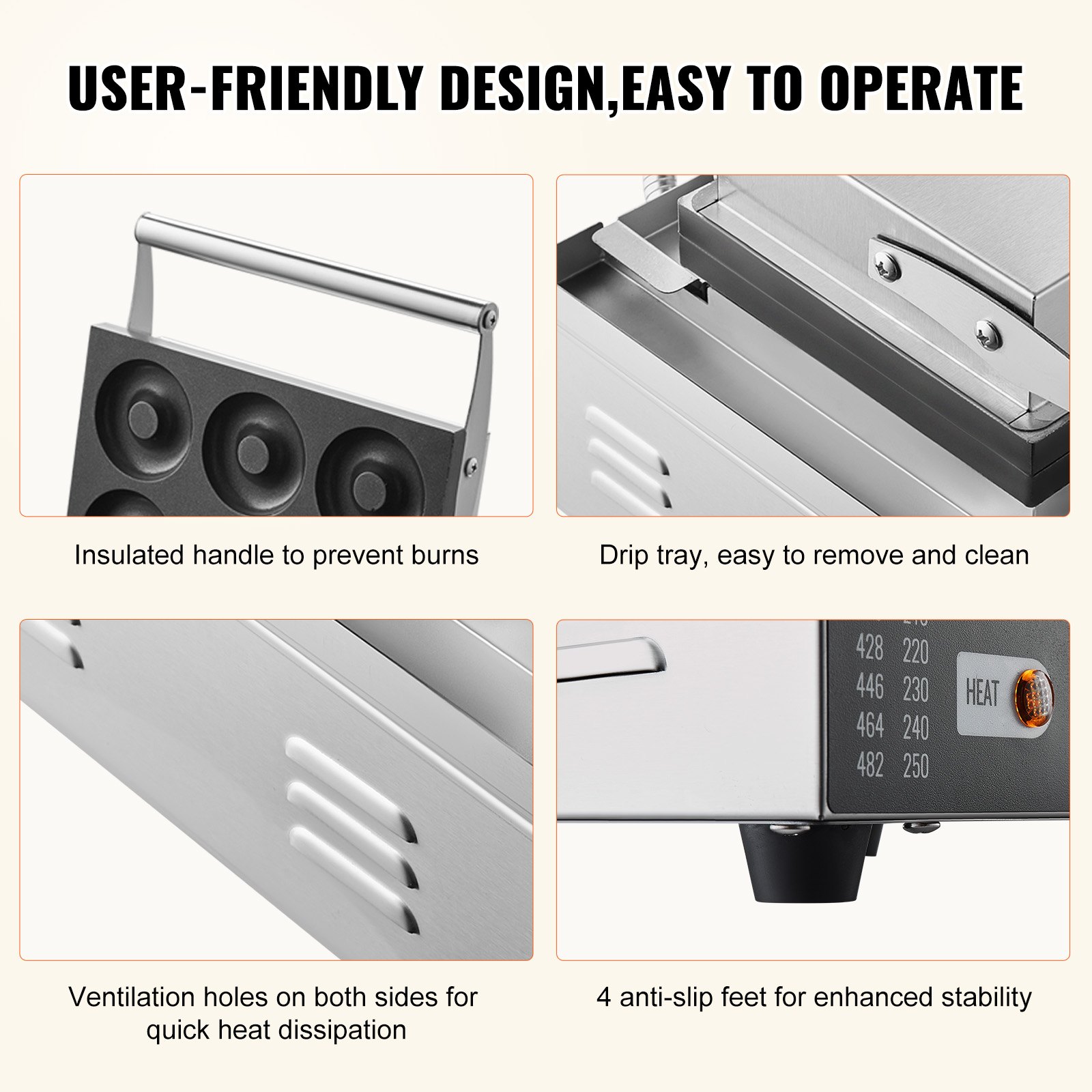 Električni uređaj za napajanje, komercijalni uređaj od 1550 W s neprianjajućim premazom, 6 rupa, uređaj za vafle s dvostrukim napajanjem od 6 snaga, 50-300 °C, za restorane i kućnu upotrebu
