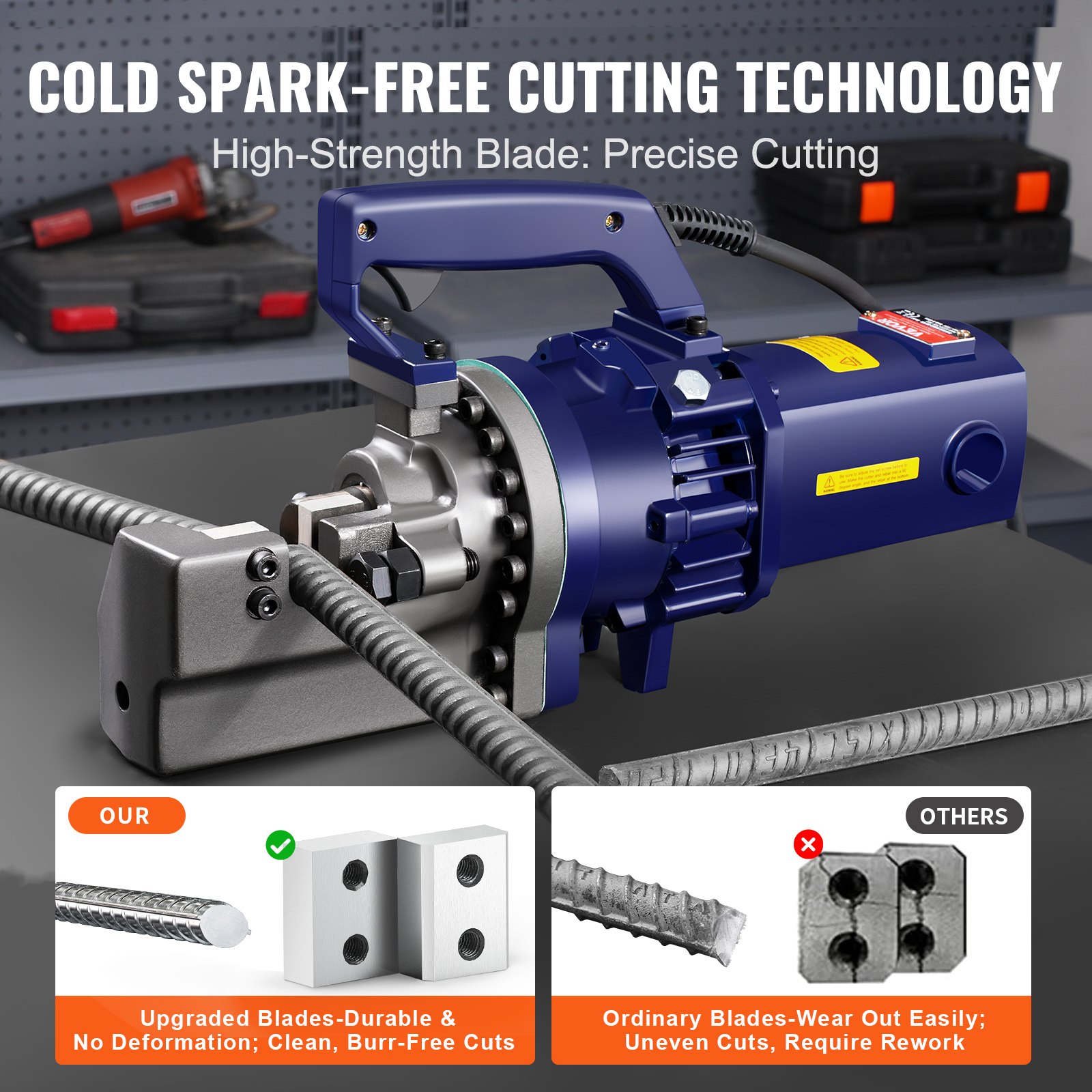 VEVOR Električni hidraulični rezač vijaka, rezač armature od 1700 W, reže armaturu od 5-25 mm za 4 sekunde, rezač armature s kutijom za alat i spremnikom za ulje, crno-plava