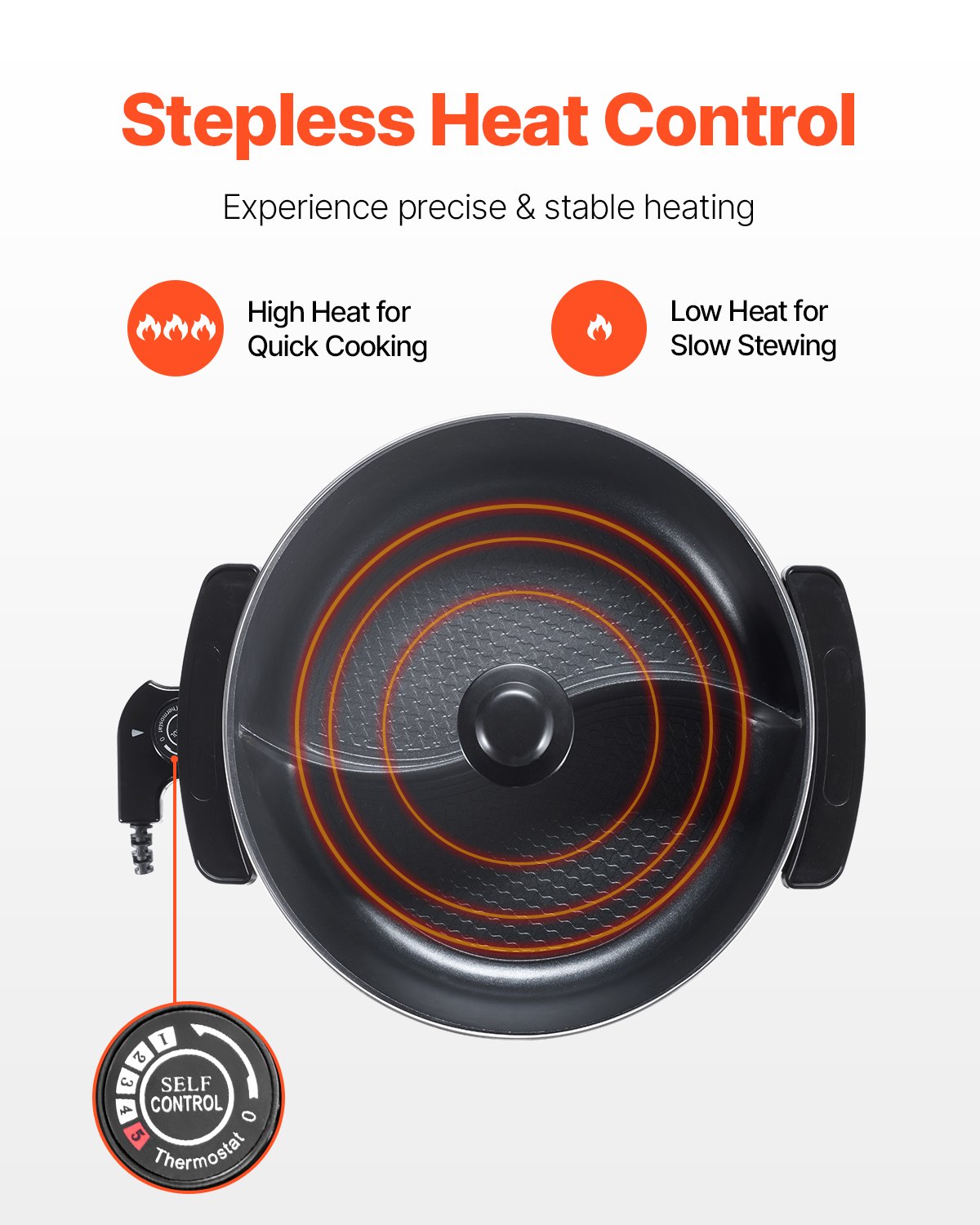 VEVOR Električni Hot Pot 1360W 5L Dvostruki okus Shabu-Shabu lonac, Električni štednjak s neprianjajućim dnom i pregradom, Poklopac od prozirnog stakla, Regulacija temperature, Hot Pot za 6-10 osoba