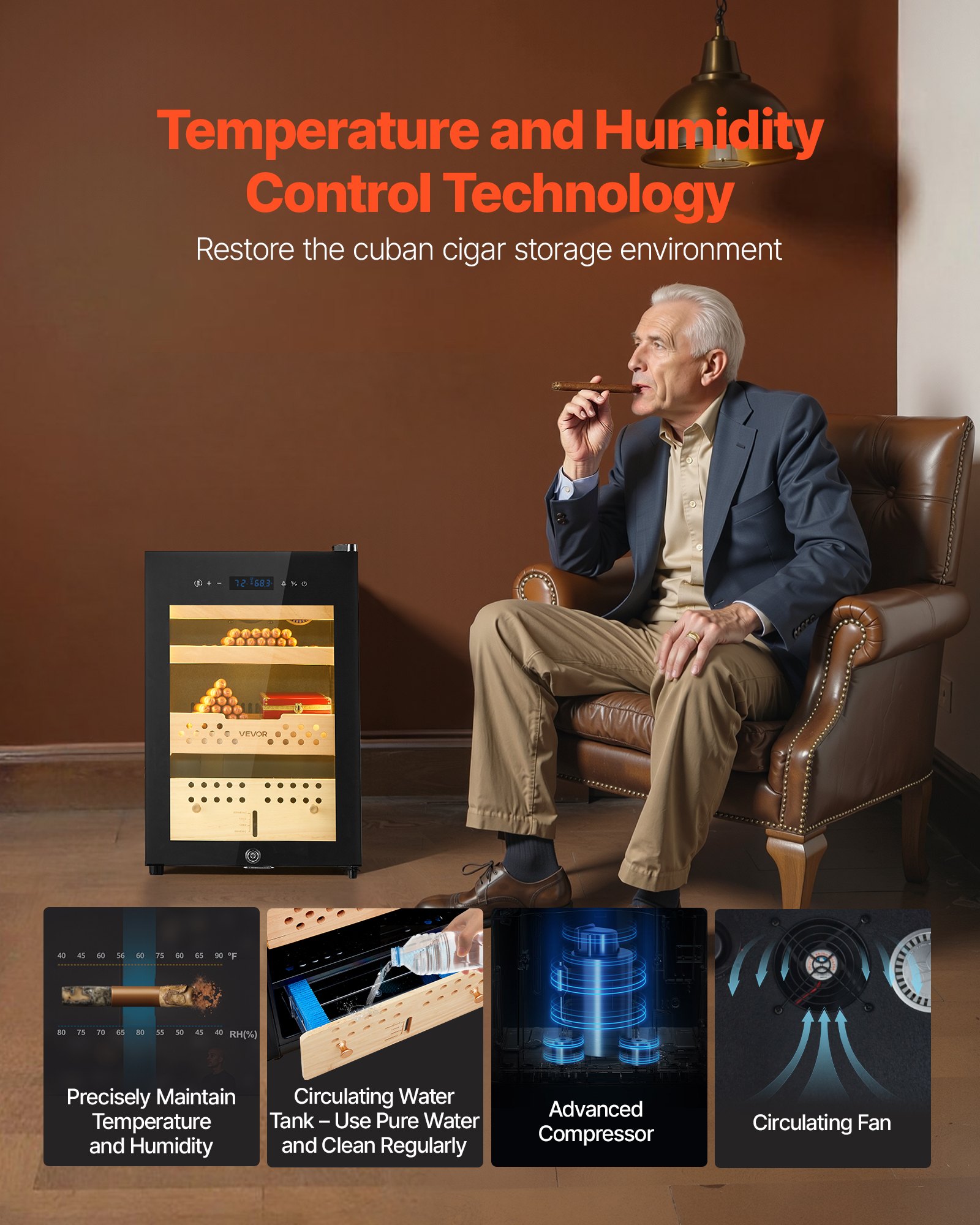 Električni humidor za cigare 60 L, kontrola temperature i vlažnosti