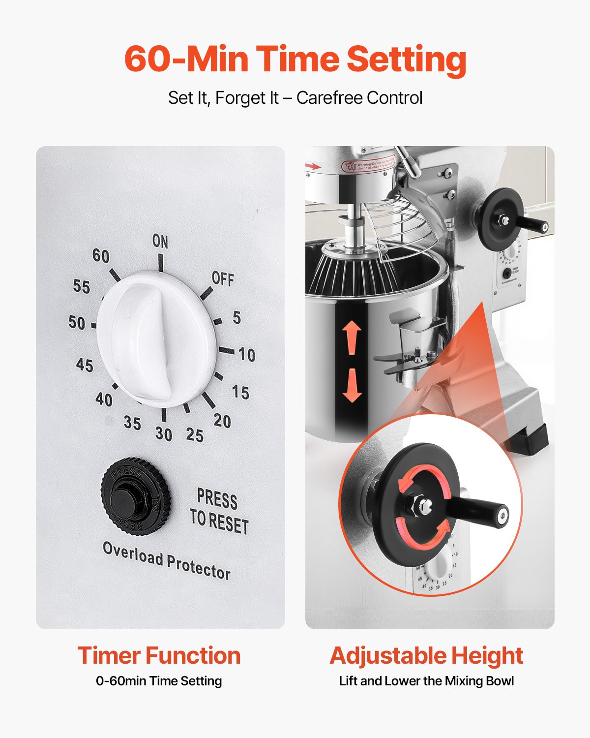 VEVOR Električni kuhinjski robot 750W B20B, Mikser, 3 brzine, Univerzalni kuhinjski robot, Mikser za tijesto, Zaštitni dizajn s posudom za miješanje od nehrđajućeg čelika od 20 l, Žičana pjenjača, Kuka za tijesto, Mutilica