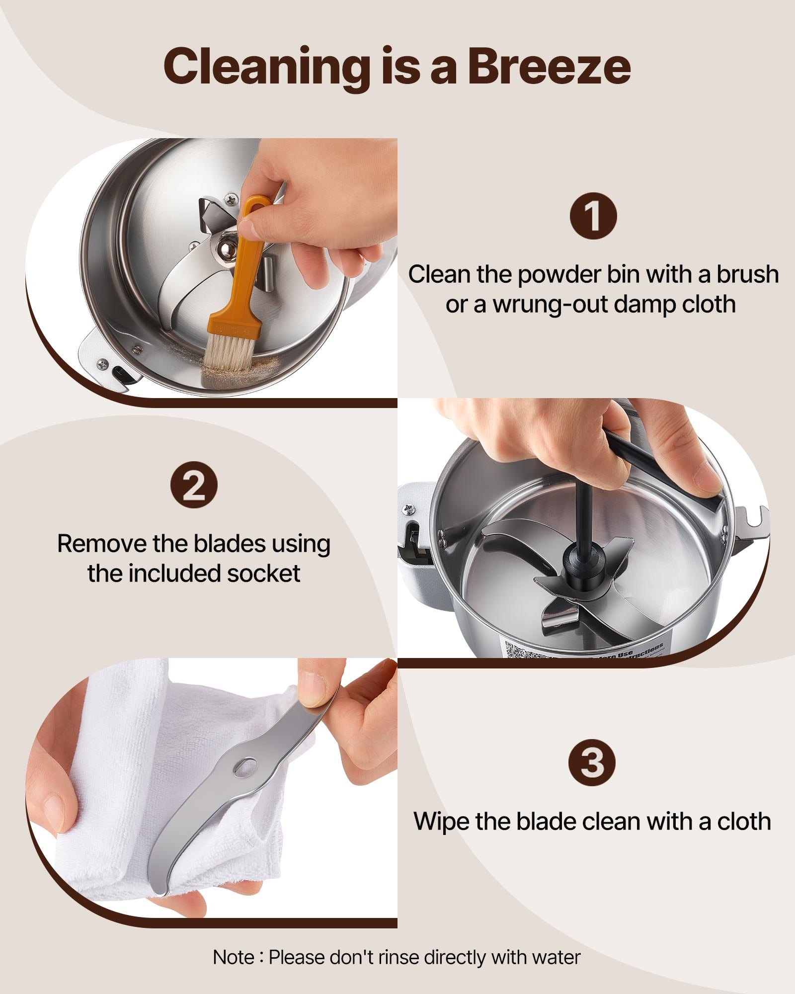 VEVOR Električni mlin za žitarice, mlin za začine velike brzine 550 g 2000 W, pulverizator od nehrđajućeg čelika, za suhe žitarice, začine, žitarice, kavu, kukuruz, papar, srebro 195 x 160 x 365 mm