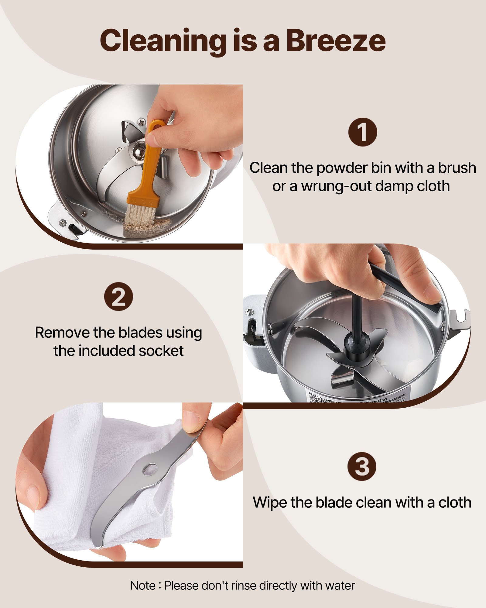 VEVOR Električni mlin za žitarice, mlin za začine velike brzine s 850 W, pulverizator od nehrđajućeg čelika, za suhe žitarice, začine, müsli, kavu, kukuruz, papar 163 x 135 x 345 mm