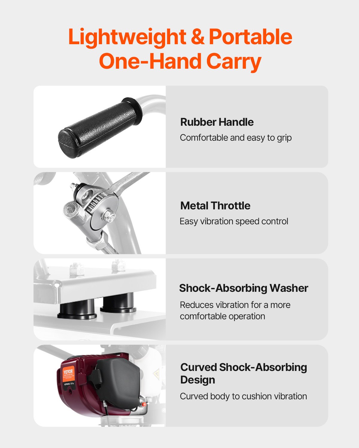 VEVOR Električni razbijač betona, aluminij, 3,36 m, alat za izravnavanje i završnu obradu betonskih estriha, 4-taktni vibracijski motor, ručke podesive po visini, visoka učinkovitost, 6500 o/min