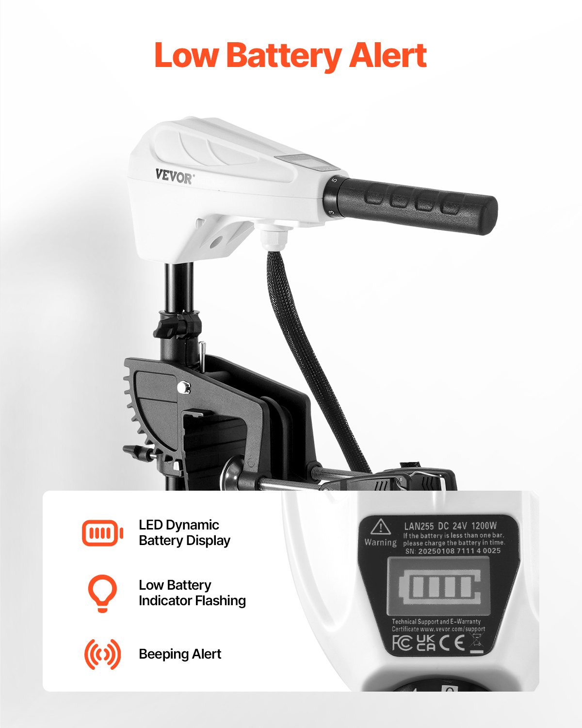 VEVOR električni vanbrodski motor, motor za čamac za montažu na krmu, 24 V, potisak 39 kg, električni trolling motor s 8 brzina i indikatorom baterije, za kajake, ribarske brodove u slatkoj/slanoj vodi, osovina 915 mm