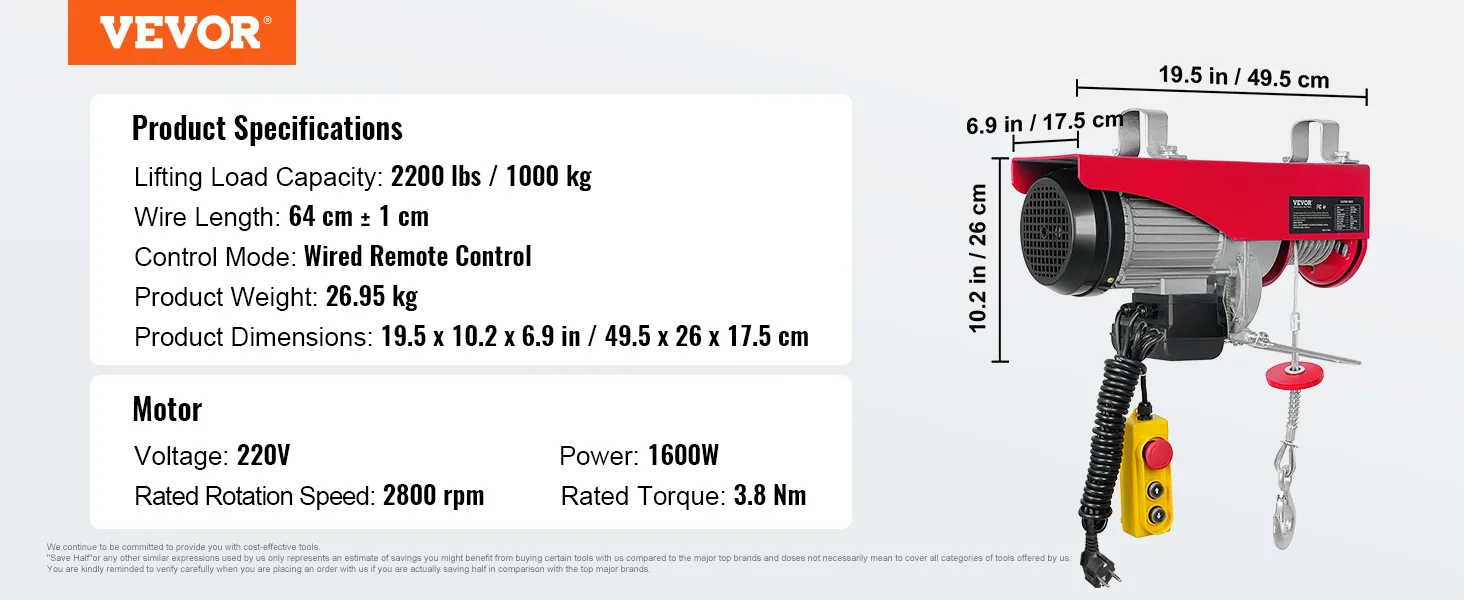 VEVOR električna dizalica – Podignite svoj teret bez napora