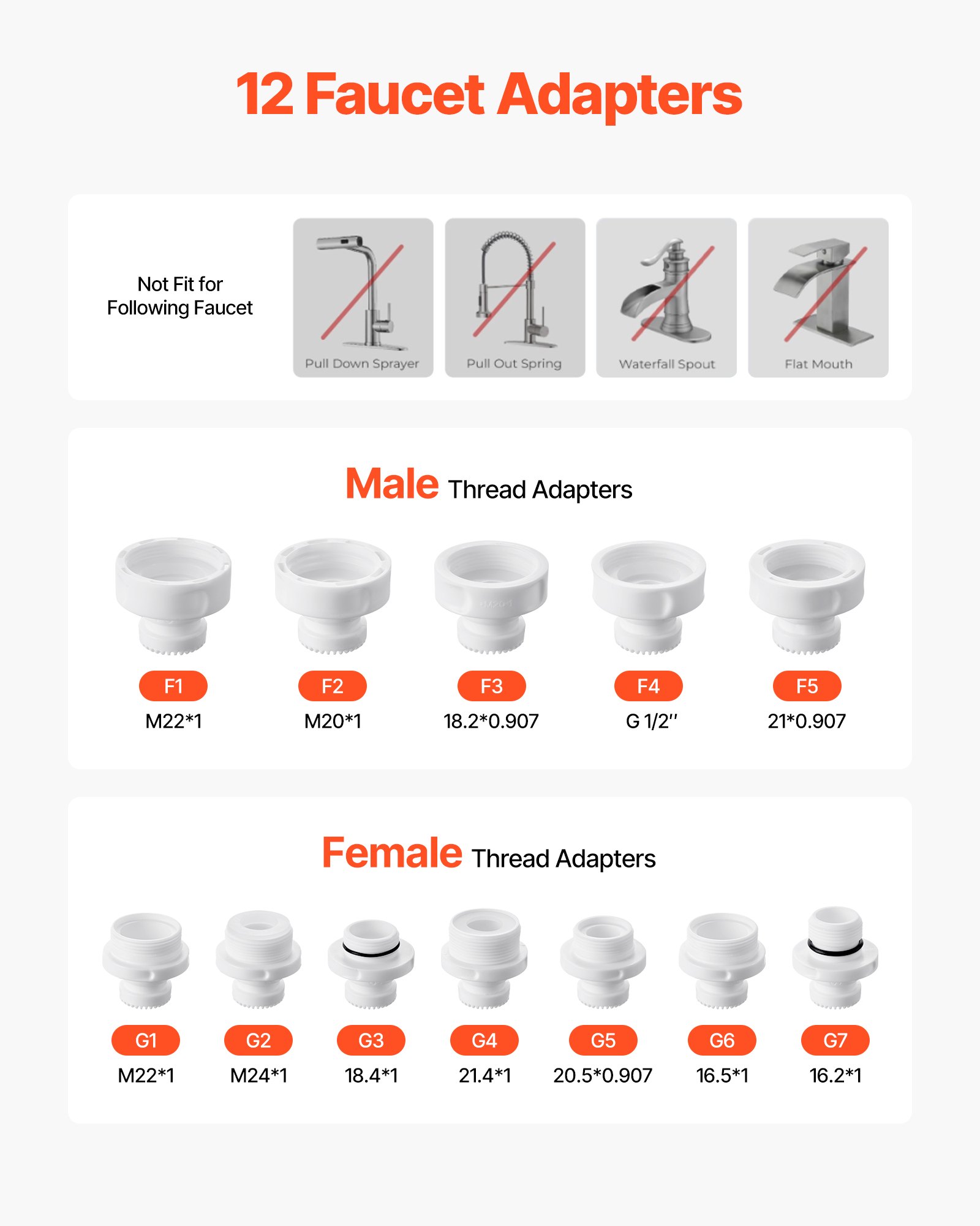 VEVOR filter za vodu za slavinu za njegu kože s mikro-nano mjehurićima za kožu, sredstvo za čišćenje slavine, uklanja klor s 1 filterom, za kuhinjske i kupaonske slavine, bijela + zlatna