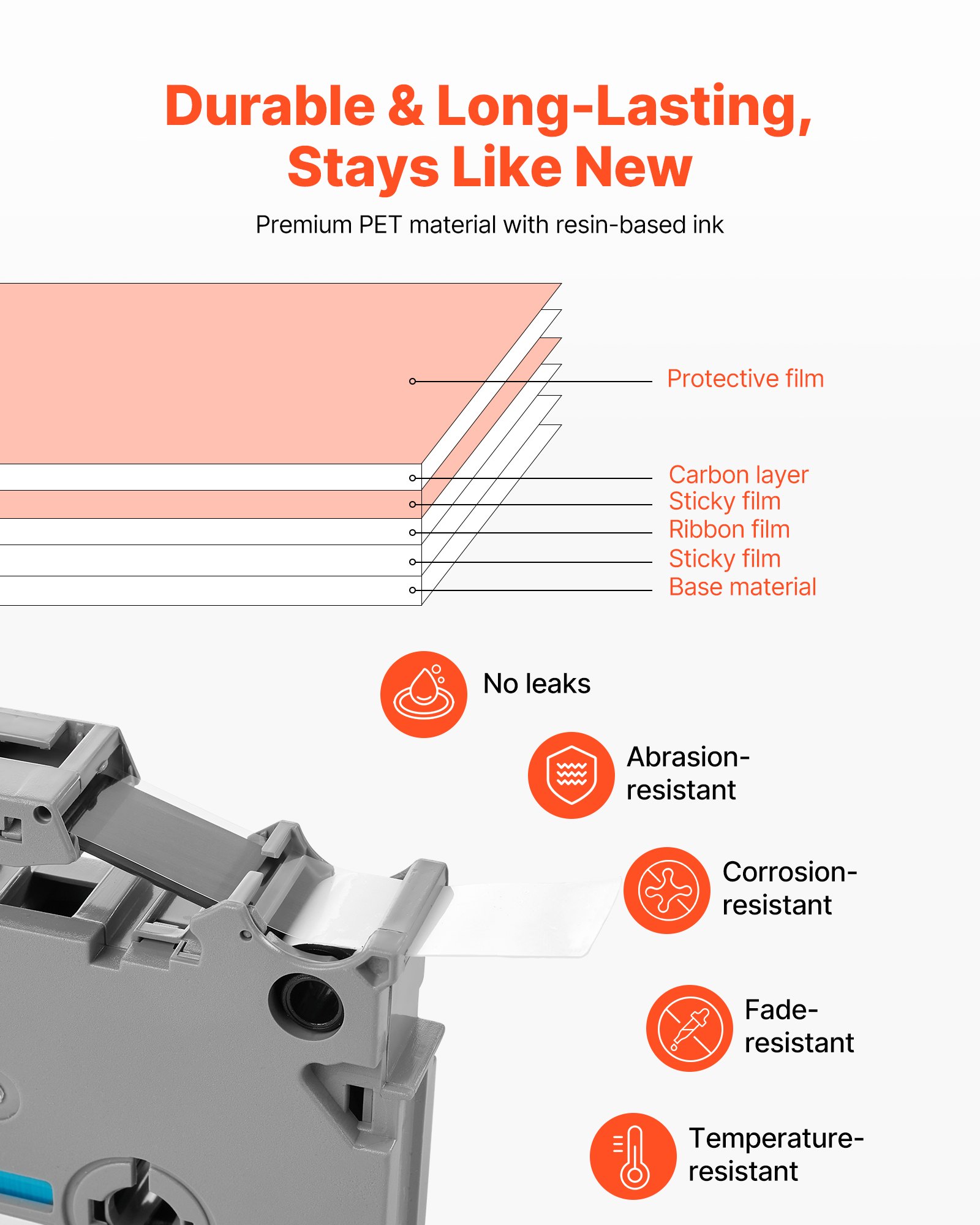 Broj obojenih vrpci: 6, Vrste vrpci: Plastične naljepnice (PET) i vrpca od karbonske smole, Opcije boja: Prozirna s crnim tekstom, Bijela s crnim tekstom, Crvena s crnim tekstom, Plava s crnim tekstom, Žuta s crnim tekstom, Zelena s crnim tekstom, Neto težina: 0,59 lbs / 0,27 kg, Broj modela artikla: Kompatibilno s Brother TZe-131/TZe-231/TZe-431/TZe-531/TZe-631/TZe-731, Duljina trake: 8 m, Širina trake: 12 mm, Čip: Bez čipa trake, Dimenzije proizvoda: 88 x 67 x 16 mm