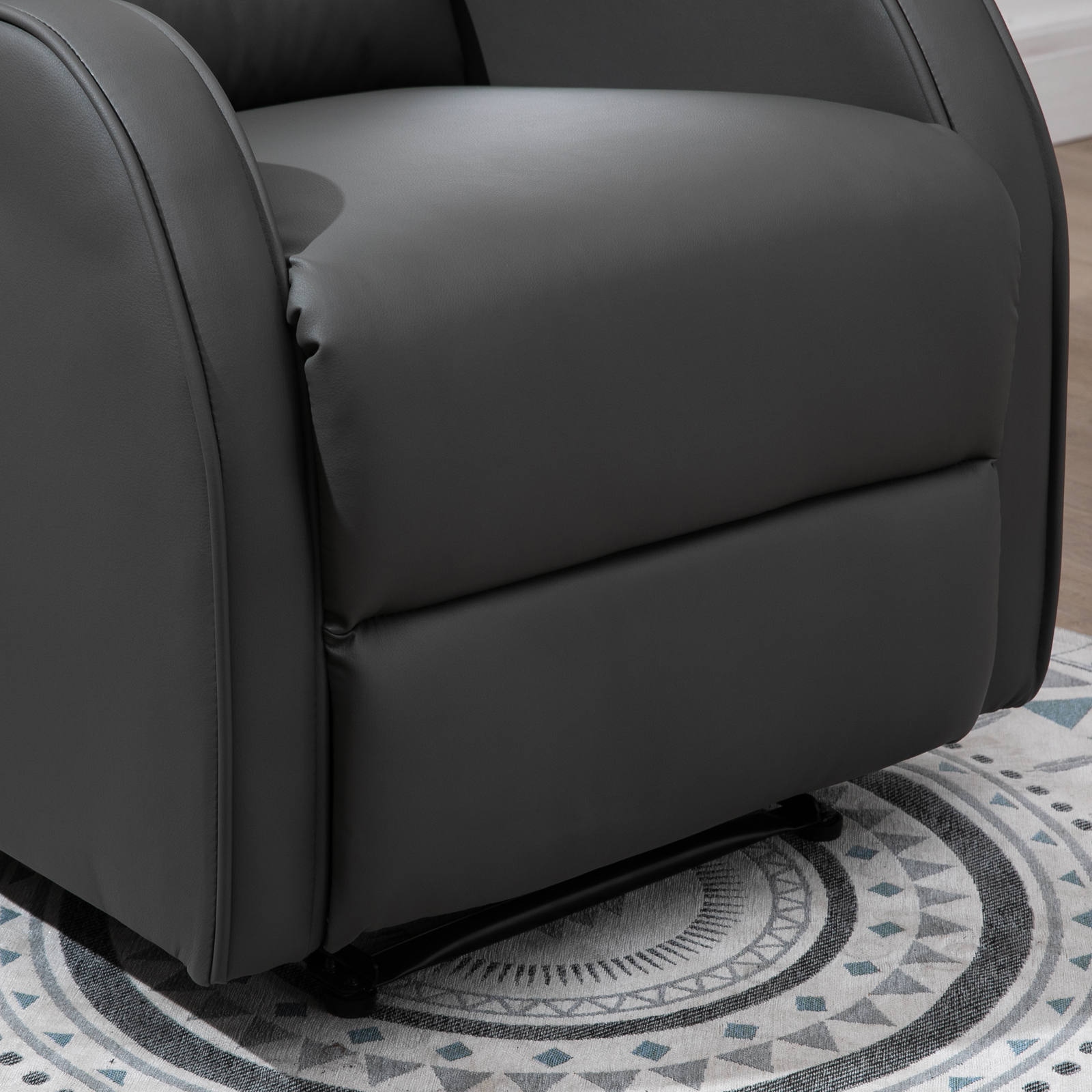 Potpuno se opustite – naša marka fotelja [BRAND NAME] nudi podesivi kut naginjanja od 160° i izvlačni oslonac za noge, savršen za opuštanje ili drijemanje. Stvorite utočište odmora i udobnosti u svom domu, idealnu zabavu i opuštanje. Za gledanje televizije možete koristiti i radio ili film, a kauč će vam uštedjeti podatke. Kvaliteta i funkcionalnost ovdje se spajaju kako bi vam ponudile oazu udobnosti. Opis: ✔ Praktična izrada iste stvari: Pomaknite oslonac za noge paralelno s naslonom kako biste opustili noge i željenom položaju. ✔ Visokokvalitetno punjenje pruža ugodnu potporu tijelu i udobnost. ✔ Umjetna koža koja se lako čisti: Gornji dio od umjetne kože jednostavan je za održavanje i izdržljiv. ✔ Elegantni detalji: spasite kino, imajte drugačiji izgled i dojam, budite sigurni da izgledate sjajno i ukrasite. ✔ Robusna konstrukcija: Metal i metalne komponente su stabilne i temeljene na metalu. ✔ Potrebna montaža: Jednostavna montaža za brzu upotrebu. Specifikacije: ✔ Boja: Tamno siva ✔ Materijal: Umjetna koža, željezo, drvo, pjena ✔ Ukupne dimenzije (uspravno): 89D x 65Š x 100V cm