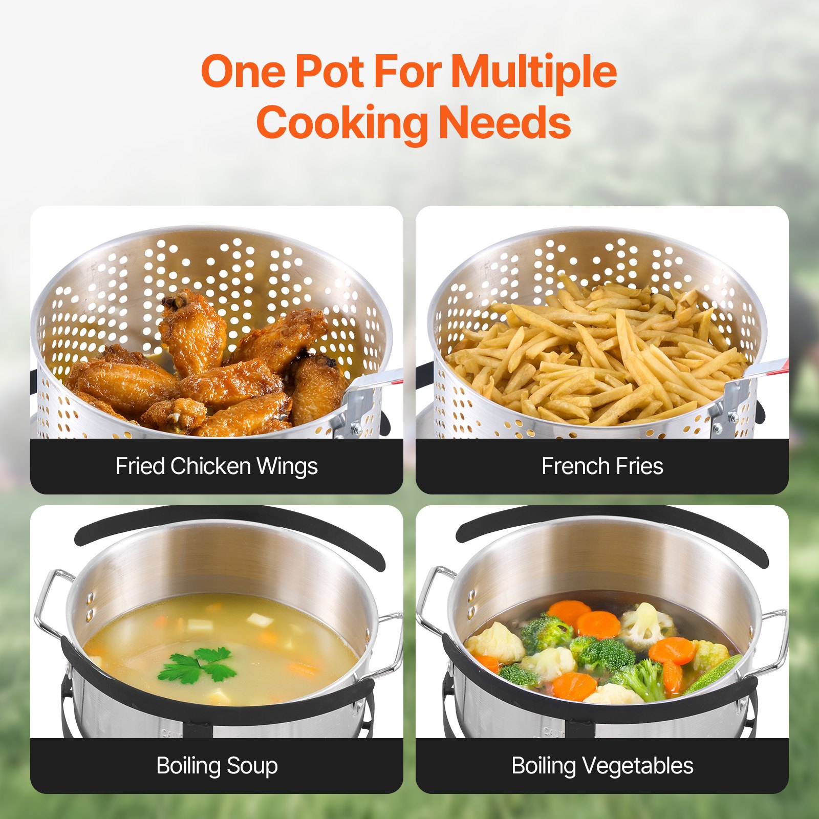 VEVOR friteza za ribu, komplet za fritezu na propan od 9,35 l, aluminijski lonac za plodove mora, vanjski lonac za plodove mora s termometrom, košara za cjedilo i plamenici na propan od 54 000 BTU, za kuhanje na otvorenom