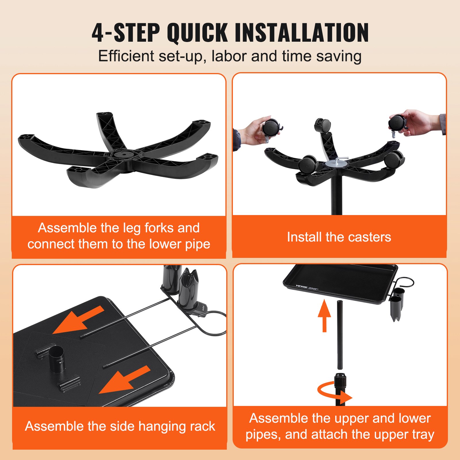VEVOR Frizerska kolica, Kolica za salon s podesivom visinom, Radna kolica, Kolica od hladno valjanog čelika s 5 kotača (2 se mogu zaključati) za SPA, brijačnicu, kliniku, Crna
