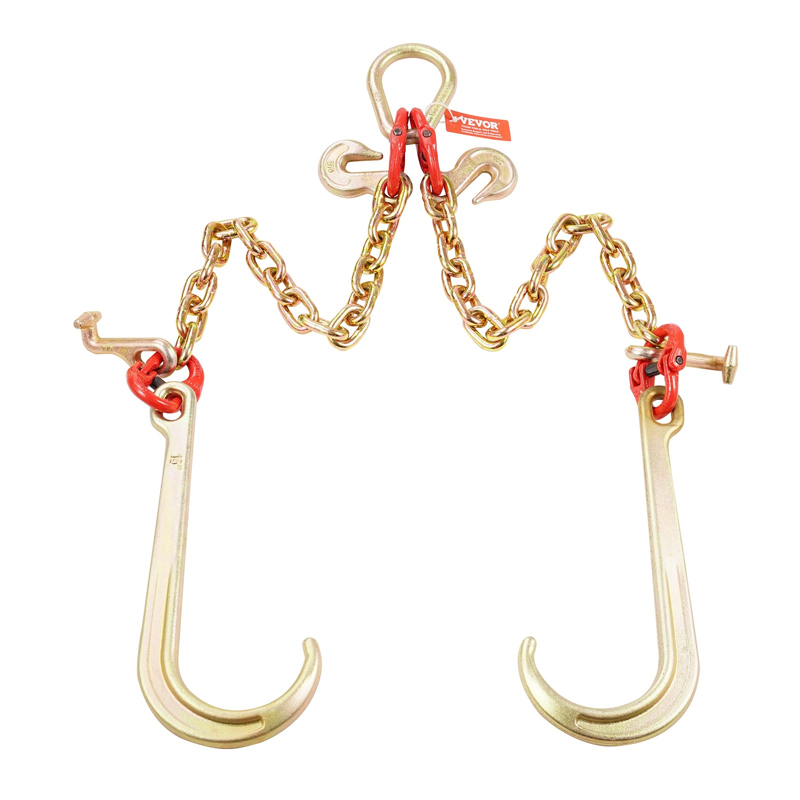 VEVOR G80 V-lanac za vuču, vučni lanac 3/8 inča x 2 stope s J-kukama od 15 inča, T-kukama i kukama za hvatanje, teški transportni vučni lanac s radnim opterećenjem od 7800 lbs za vuču kamiona s ravnom platformom