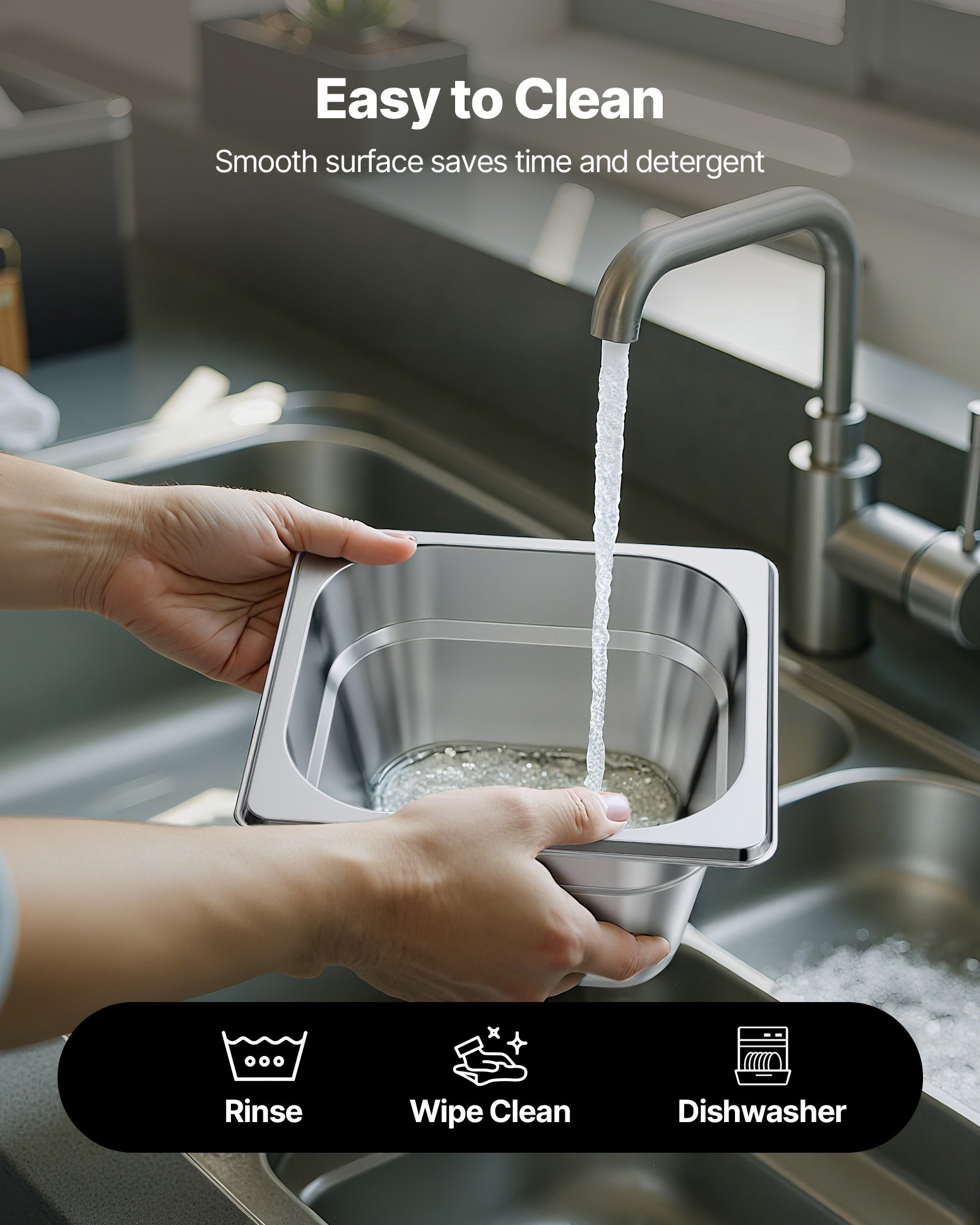 VEVOR Gastronorm posude za hotelske tave (veličina 1/6) 6 kom. 1,7 L, Posude za višekratnu upotrebu (dubina 10 cm), Pohrana od nehrđajućeg čelika za catering, Posuda za pohanu hranu za restoranski buffet za zabave