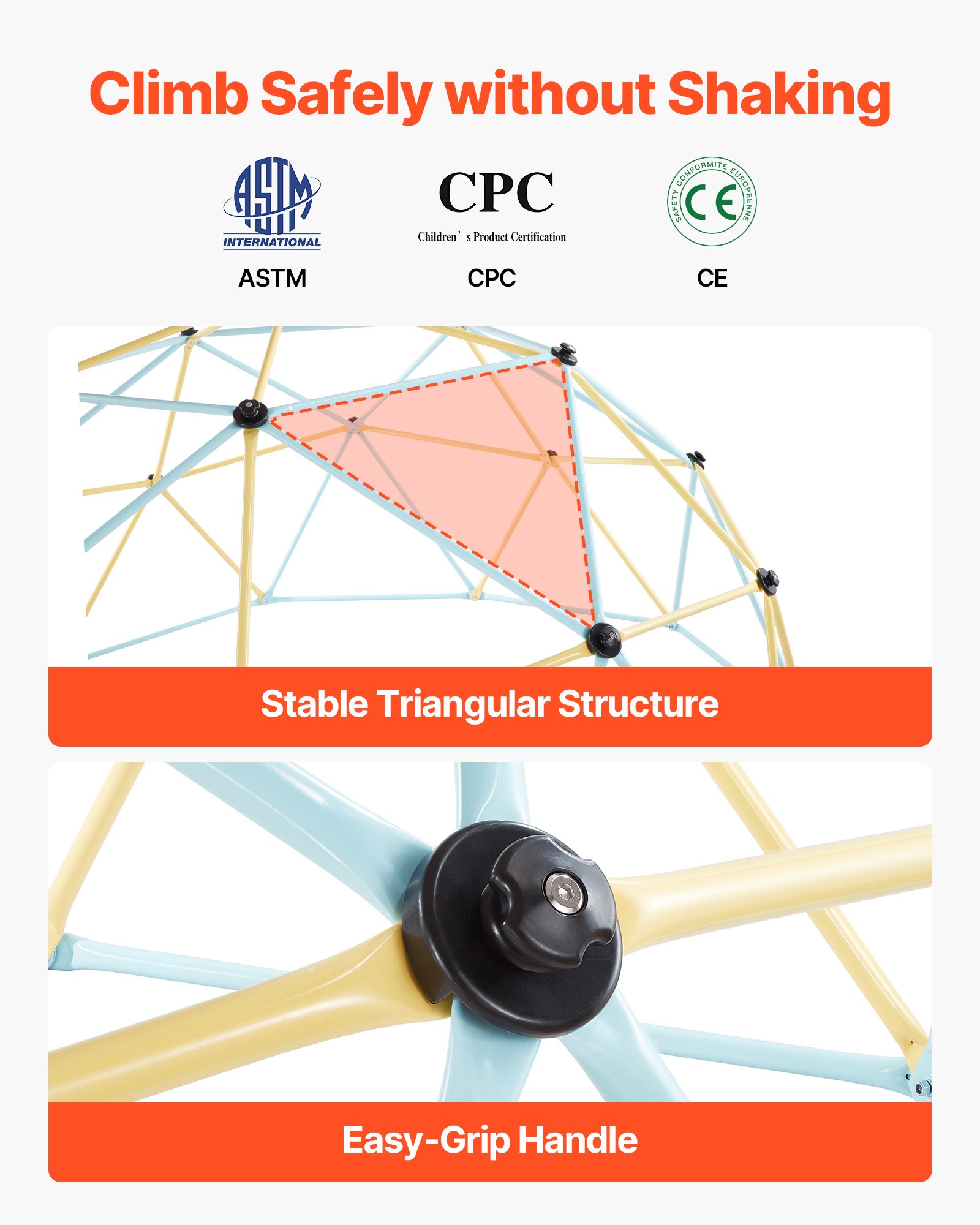 VEVOR Geometrijska penjalica za kupolu za penjanje (širine 305 cm) s rukavicama i 2 košarkaške lopte, nosivost 453 kg, oprema za penjanje za djecu od 3 do 10 godina, vrtna igračka