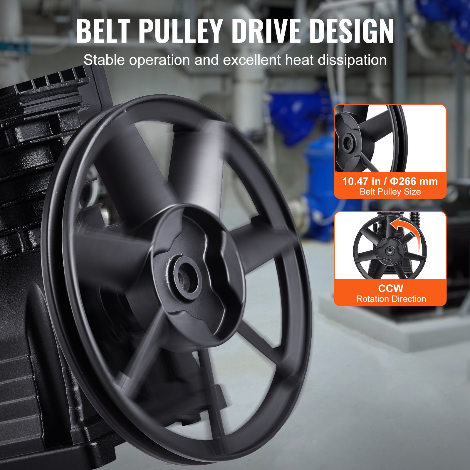 VEVOR glava pumpe zračnog kompresora, 3 KS, 5,8 CFM pri 90 PSI, uljno podmazana glava klipne pumpe s dva cilindra, jednostupanjska aluminijska pumpa zračnog kompresora s maks. tlakom od 116 PSI