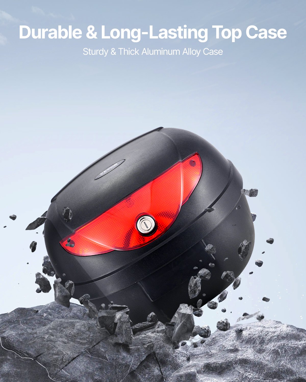 VEVOR gornji kovčeg za motocikl, stražnji kovčeg od 24 l izrađen od PP materijala s reflektirajućom pločom, vodootporan i uklonjiv gornji kovčeg za motocikl s višerupnom bazom, kovčeg za kacigu (408 x 390 x 285 mm)