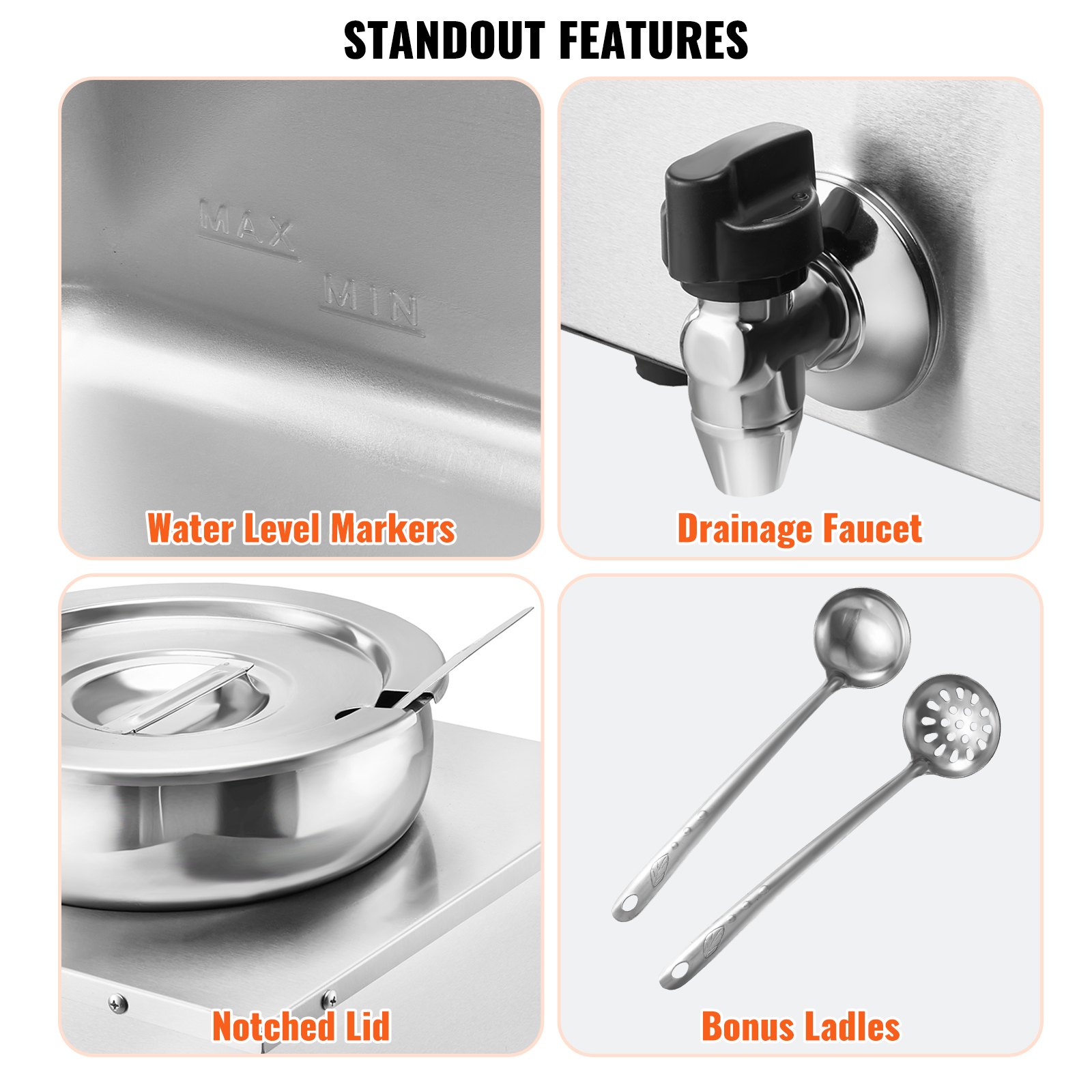 VEVOR Grijač hrane od nehrđajućeg čelika za bife 1200 W, 2 x 8,1 L posude za bife, φ180 x φ240 x 220 mm Svaka posuda za juhu, uklj. Poklopac i slavina za odvod i indikator suhog izgaranja, za kantine, kafiće, restorane itd.