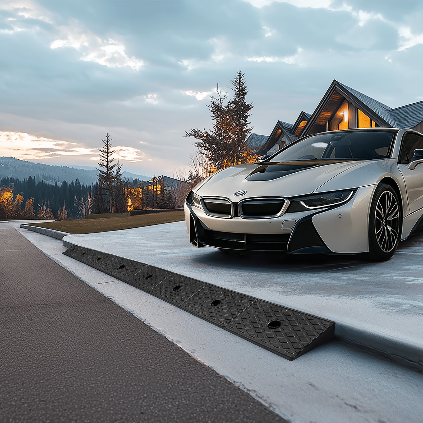 VEVOR gumena rampa za rubnike, nosivost 15T, prag visine 5,08 cm s odvodnim spremnikom za invalidska kolica, dječja kolica, motocikle, automobile, kosilice i prikolice, pakiranje od 2 komada