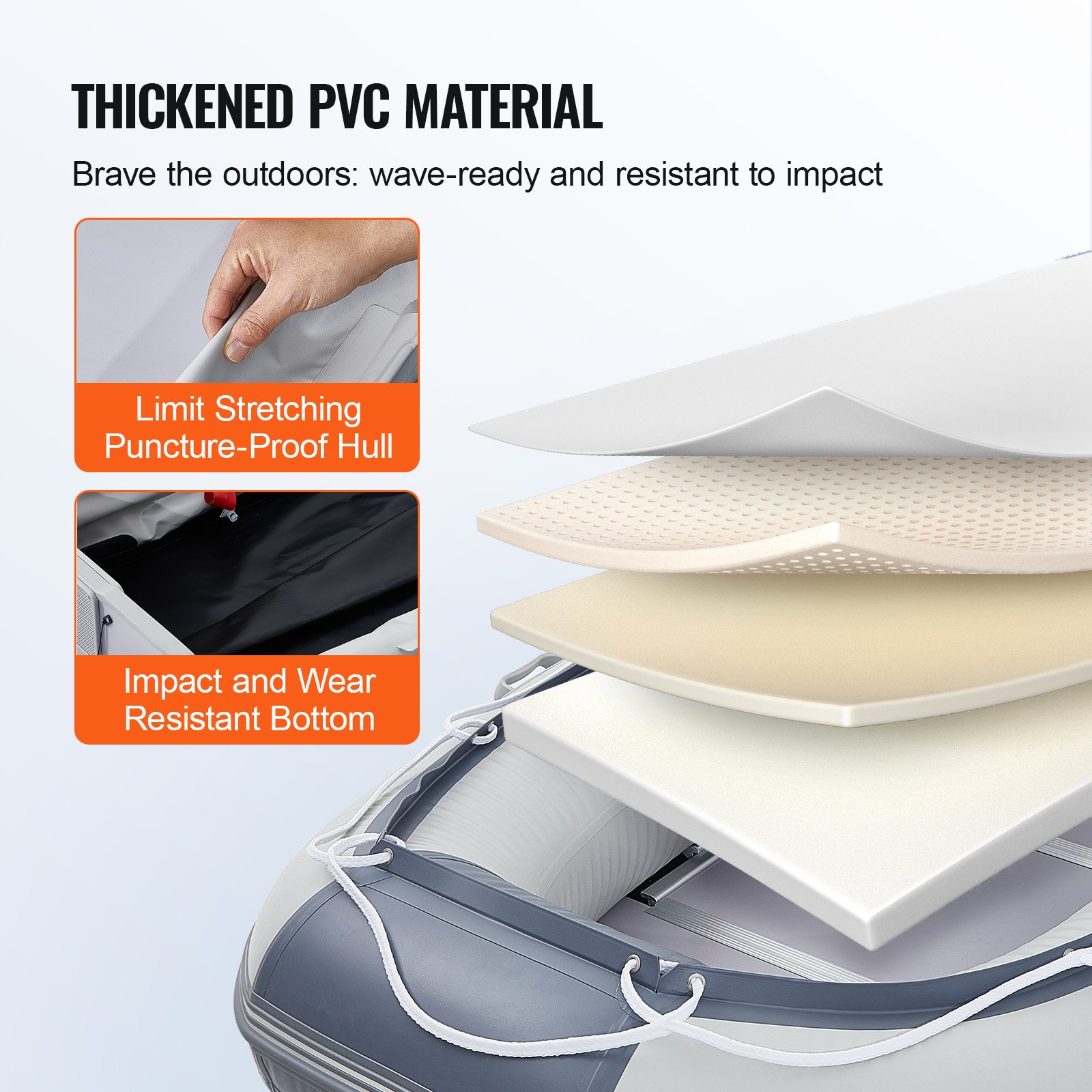 VEVOR gumeni čamac, sportski čamac za 6 osoba s krmom, drvenim podom za brodove i podesivom aluminijskom klupom, splav za ribarski čamac na napuhavanje od 680 kg, aluminijska vesla, zračna pumpa i torba za nošenje