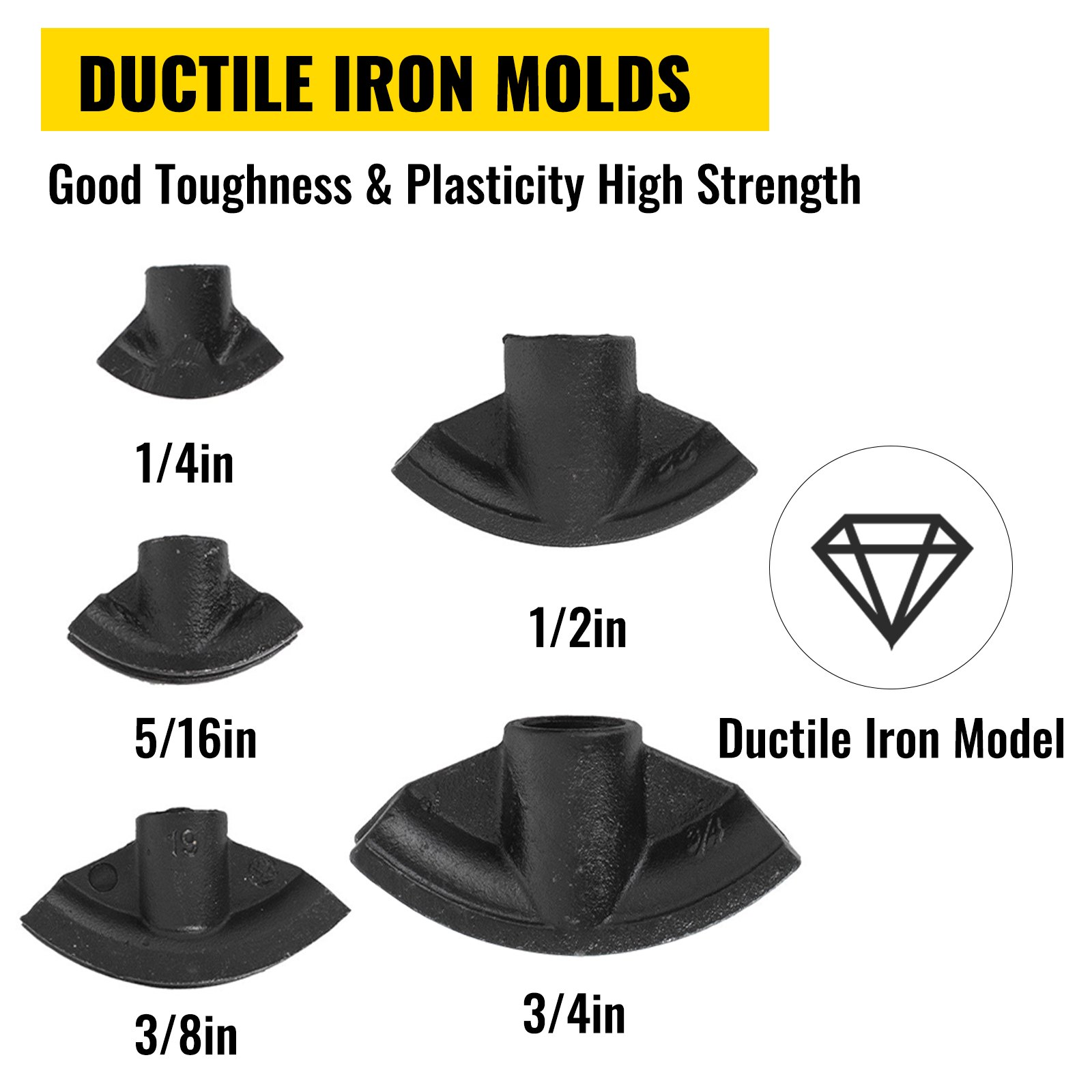 Raspored kalupa: 1/4 inča, 5/16 inča, 3/8 inča, 1/2 inča, 3/4 inča, 1 inč, Veličina: 49 x 24,5 x 14,5 cm / 19,2 x 9,6 x 5,7 inča, Model: SWG-1, Debljina cijevi: 2-5 mm / 0,07-0,19 inča, Hod: 170 mm / 7 inča, Vanjski promjer: 13 mm-34 mm / 0,5-1,3 inča, Izlaz: 10 tona, Težina: 23 kg / 50,7 LBS