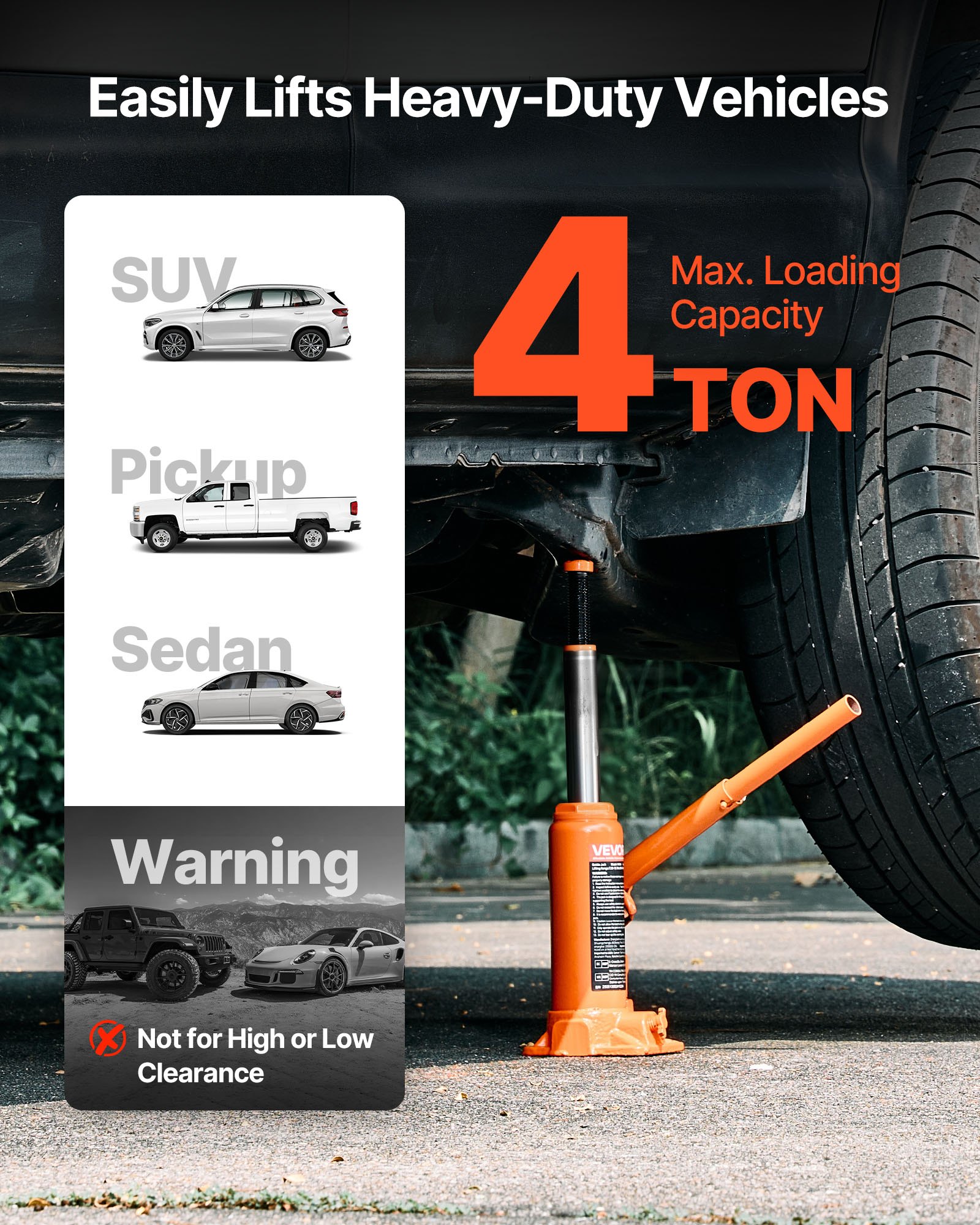 VEVOR hidraulična dizalica za boce nosivosti 4 tone, raspon podizanja 185-350 mm, dizalica za boce sa sustavom zavarivanja za automobile, kamionete, SUV-ove i popravak automobila, dizalica za boce za teške uvjete rada