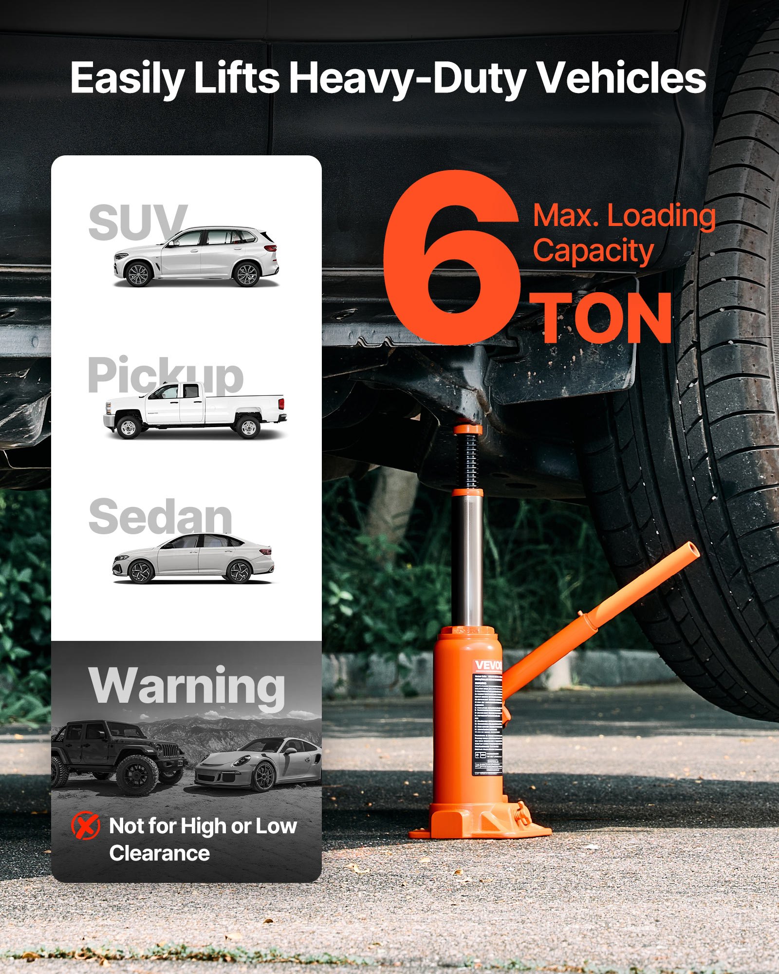 VEVOR hidraulična dizalica za boce nosivosti 6 tona, raspon podizanja 195–375 mm, dizalica za boce sa sustavom zavarivanja za automobile, kamionete, SUV-ove i popravak automobila, narančasta dizalica za boce za teške uvjete rada