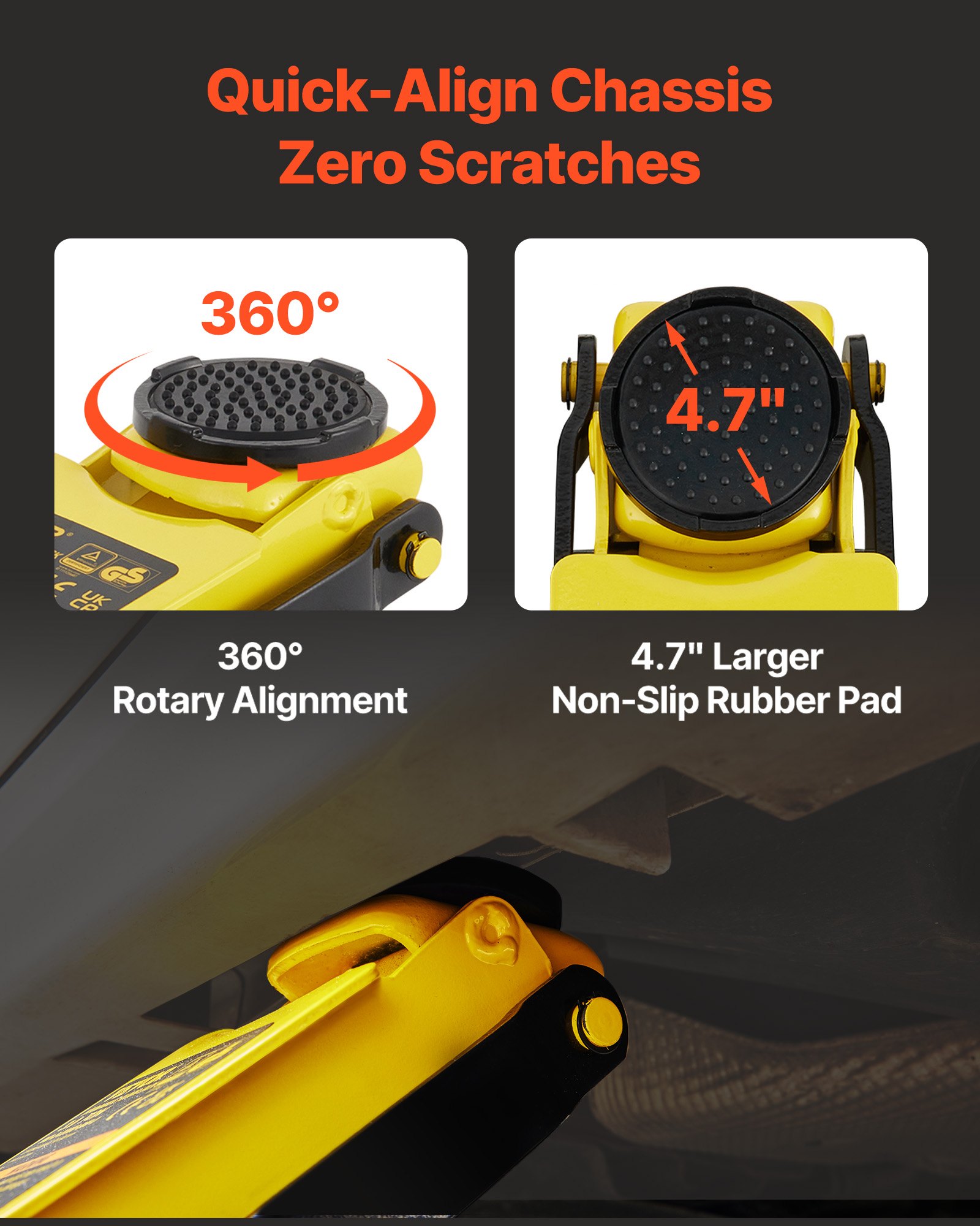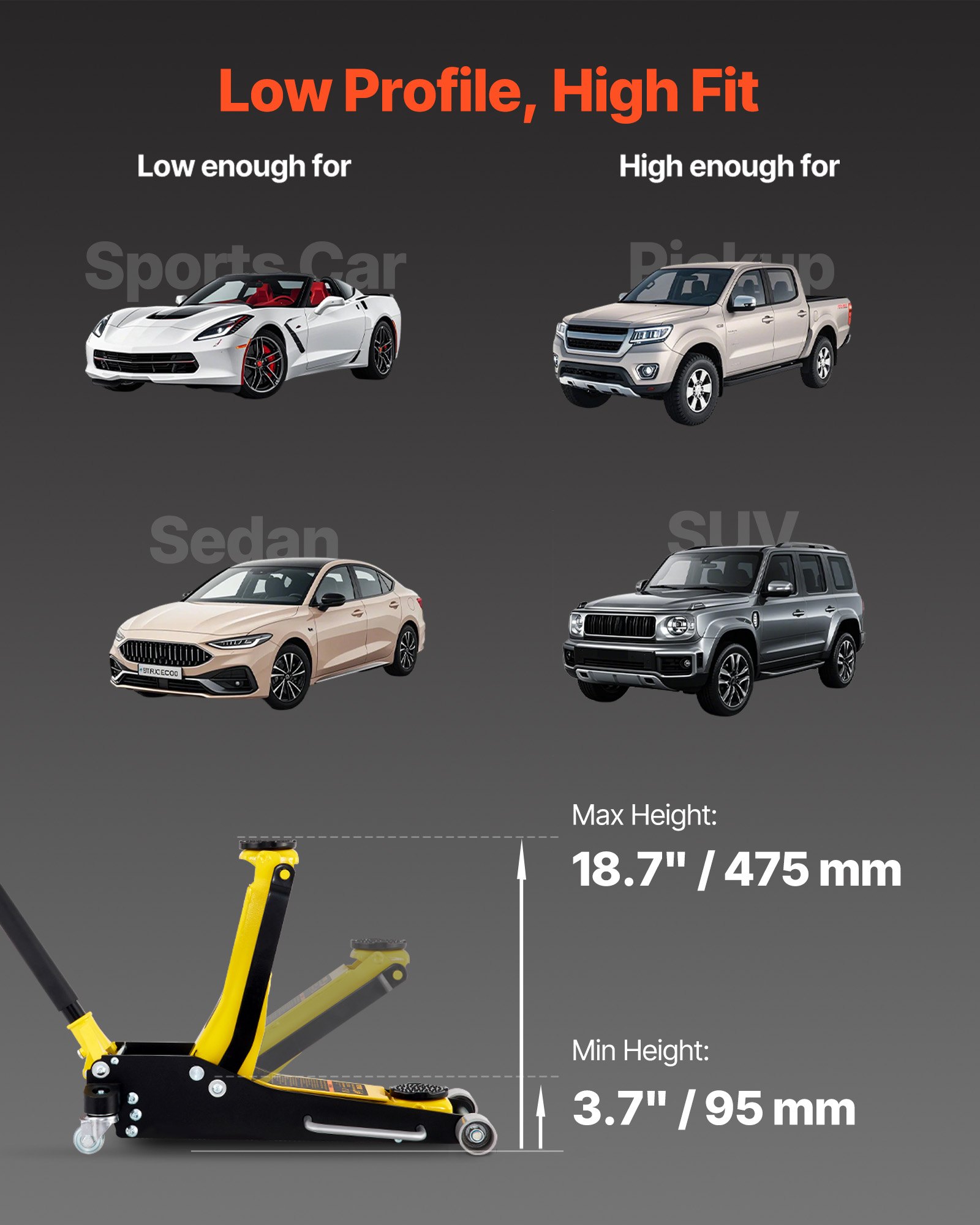 VEVOR 2,5t hidraulična dizalica za kolica, 95-475 mm aluminijska i čelična dizalica za automobile, postolje dizalice promjera 119 mm, škarasta dizalica za SUV-ove i radionice