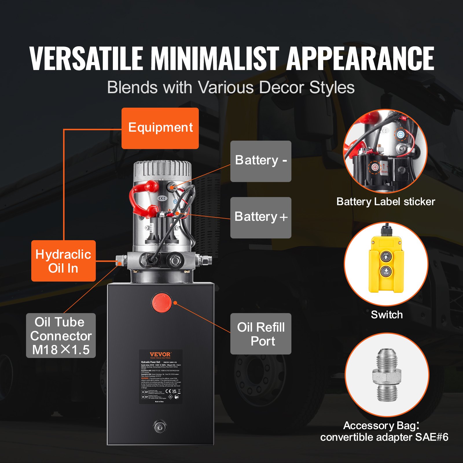 VEVOR hidraulična pumpa 12V hidraulični agregat 1600W, jednostruko djelovanje hidrauličke pumpe, spremnik od 3 galona Ručna hidraulična pumpa, za dizala, viličare itd.