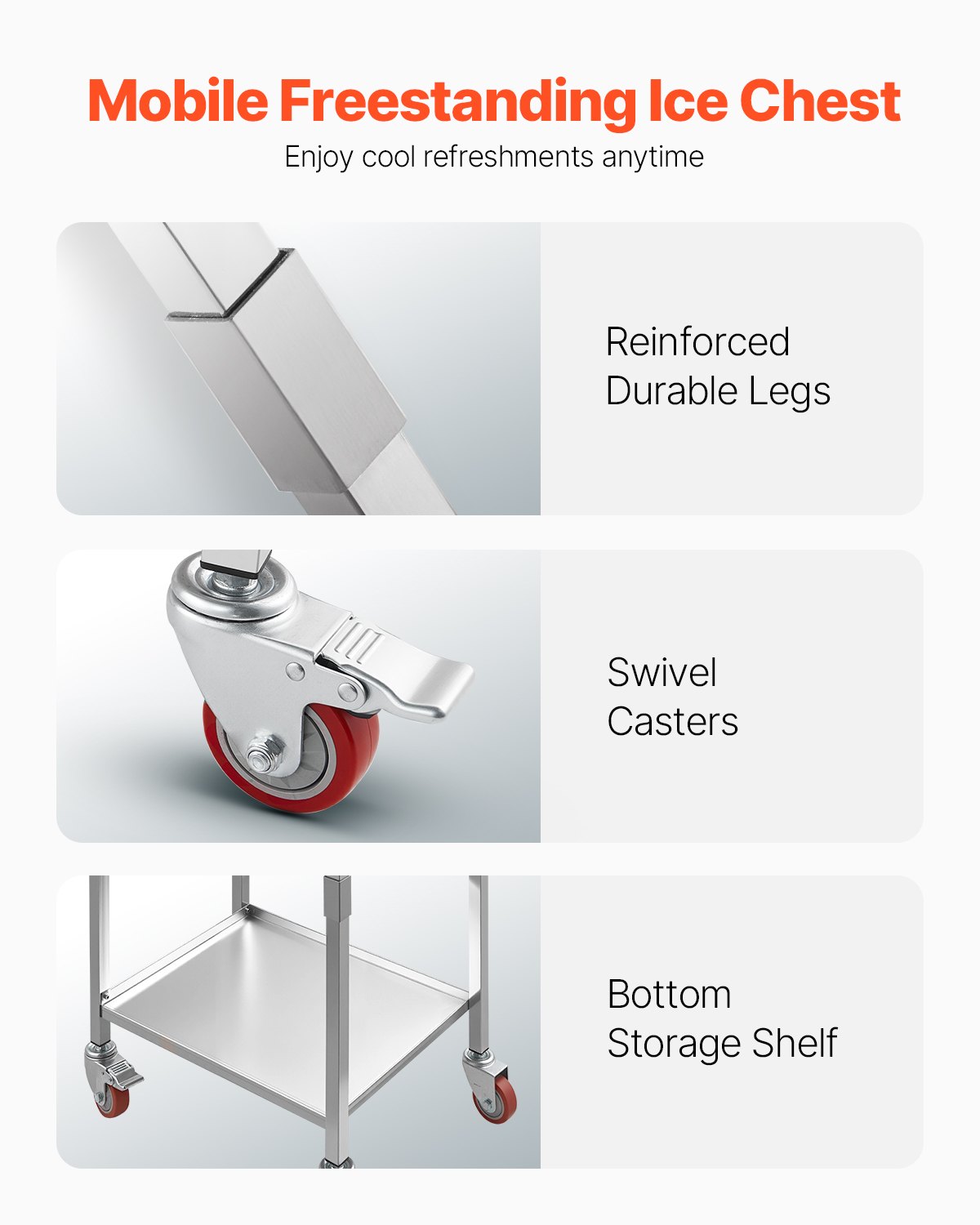 VEVOR kutija za led na kotačiće (553 x 405 x 970 mm) Hladnjak od nehrđajućeg čelika, 31 l komercijalna kutija za led na kotačima za vanjsku upotrebu s policom, za party bar u vrtu ili na terasi