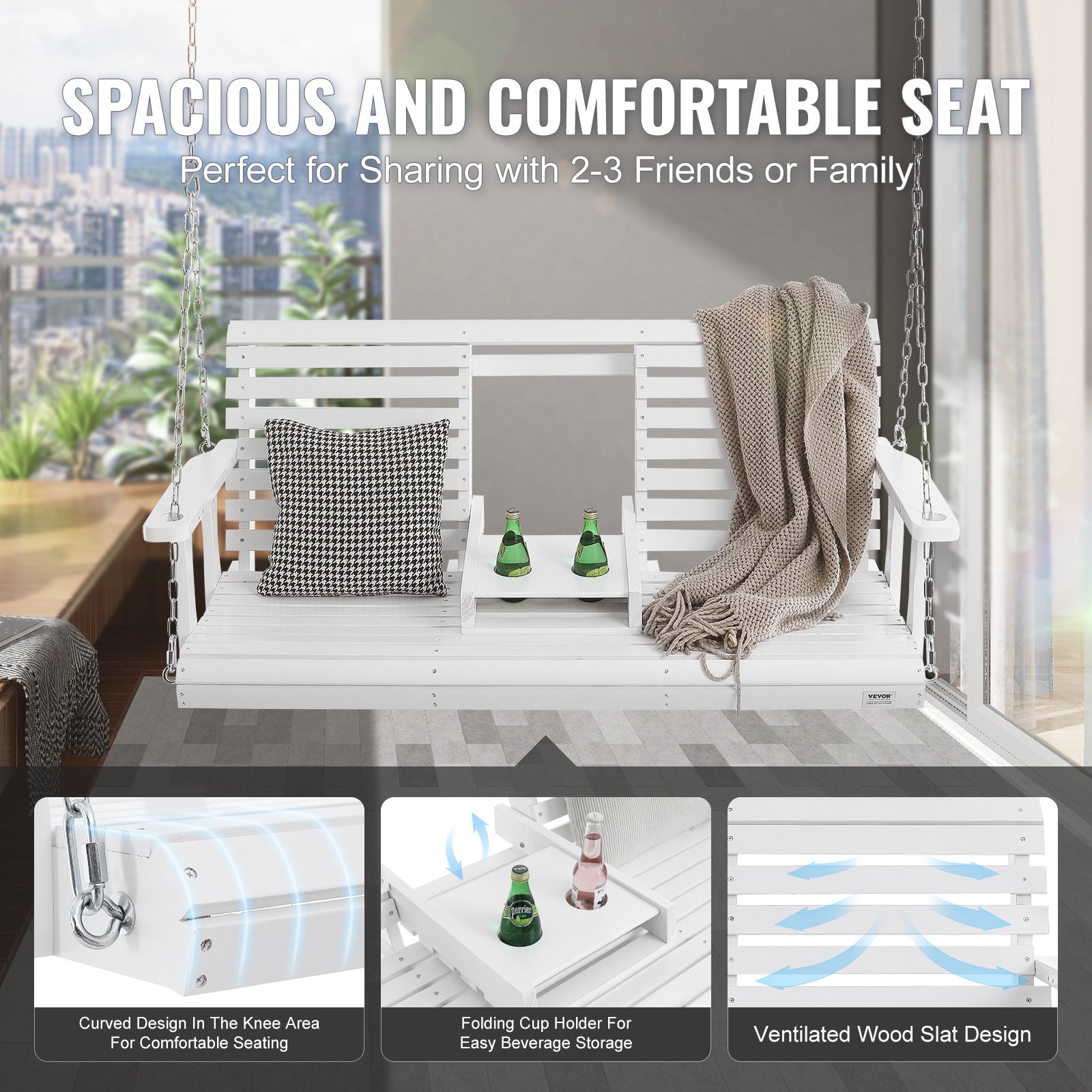 VEVOR Hollywood ljuljačka od cedrovine, 1523x710x600mm, Vrtna ljuljačka za dvorište i vrt, Poboljšana nosivost od cca. 400 kg, Čvrsta klupa za ljuljanje s lancima za ovjes za vanjsku upotrebu, bijela