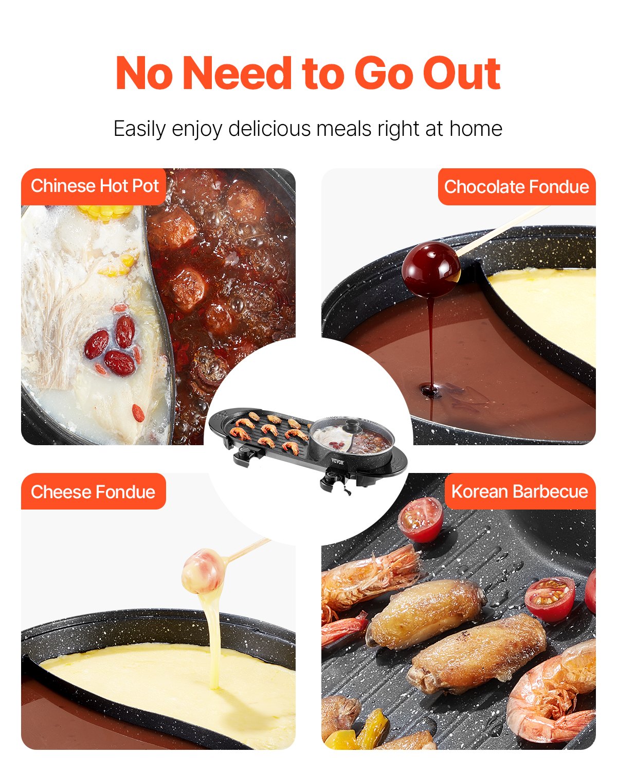 VEVOR Hot Pot s roštiljem, 2200 W 2 u 1 električni roštilj bez dima i Hot Pot, korejski BBQ Shabu lonac za vatru s odvojenom dvostrukom kontrolom temperature i Neljepljive tave