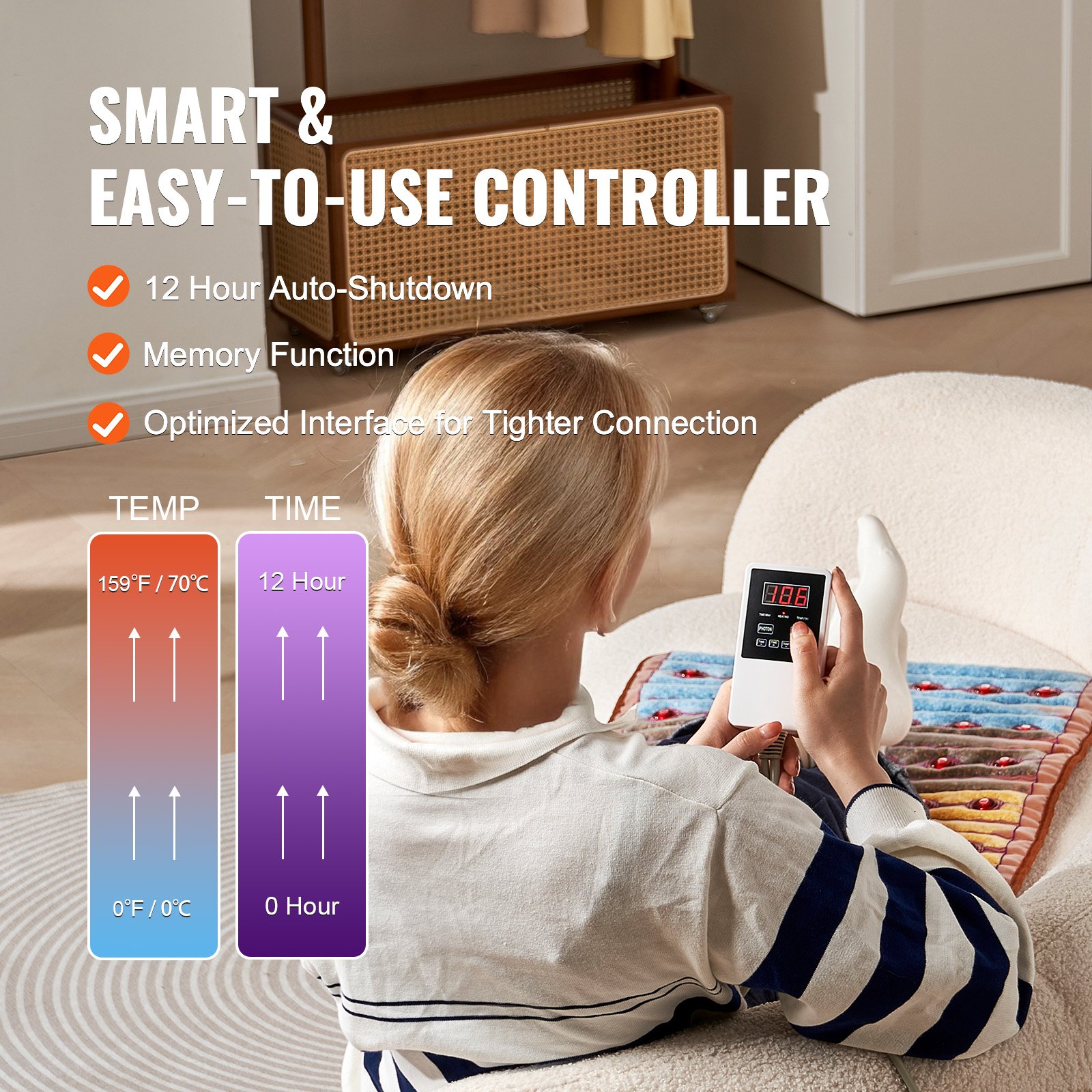 VEVOR Infracrvena grijaća podloga, 104x51cm, Ametistna terapijska podloga izrađena od 5 prirodnih kristalnih dragog kamenja s fotonskom svjetlošću od 660nm, negativnim ionima, za ublažavanje boli u leđima, struku i ramenima