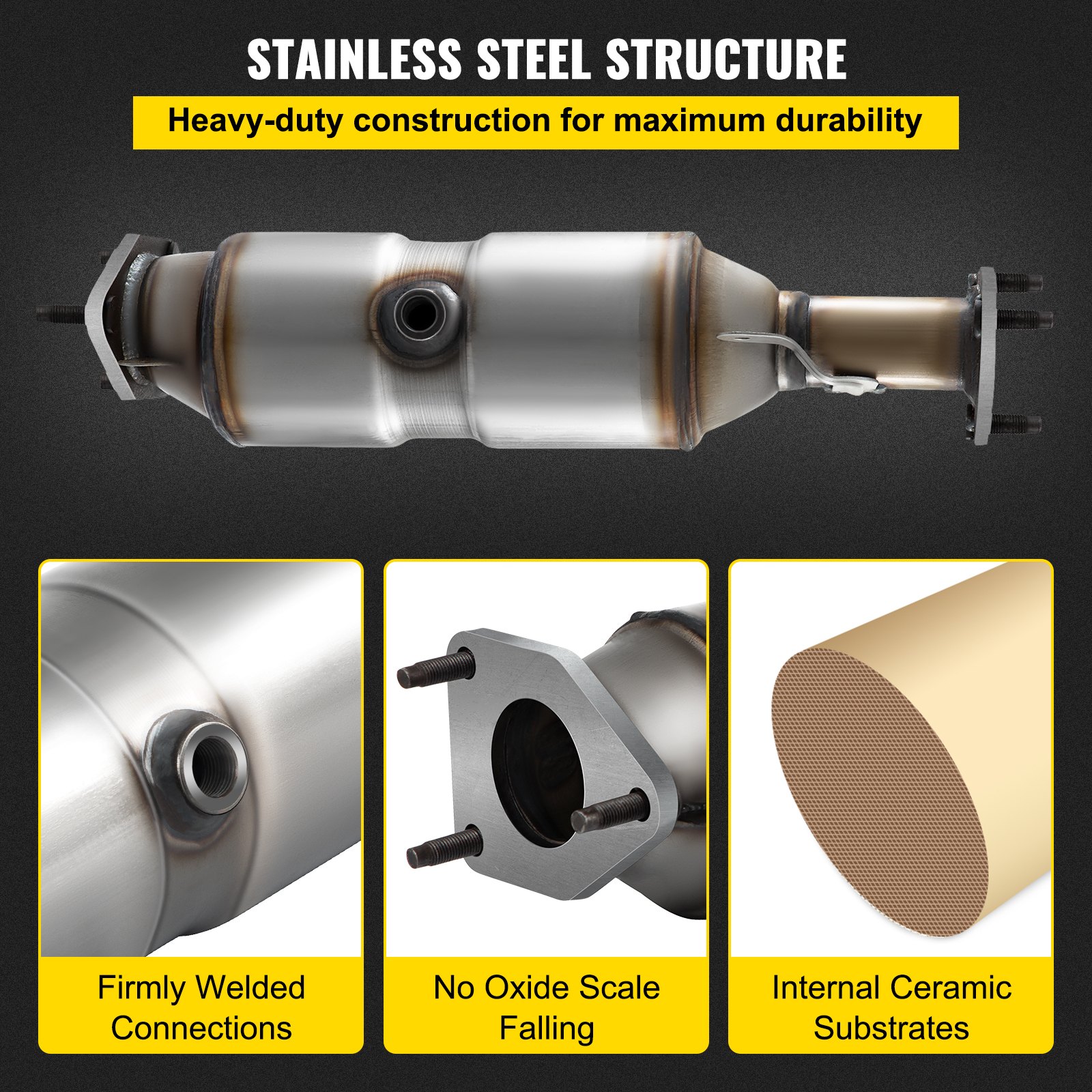 VEVOR izravni katalitički pretvarač za Honda Accord 2003.-2007. Unutarnja keramička podloga 400 ćelija Vijčani spojevi Konstrukcija od nehrđajućeg čelika Visokoprotočni OEM dizajn Visoke protočne performanse Vanjska ljuska od nehrđajućeg čelika Dizajn prirubnice na prirubnicu Unutarnja saćasta struktura Kompatibilan s OBD III standardom Za Honda Accord 2003.-2007. Model: CHQ03-07, Broj ćelija: 400 ćelija, Veličina proizvoda (D x Š): 19,1 x 5,9 inča / 48,5 x 15 cm, Unutarnji promjer ulaza: 2,2 inča / 5,5 cm, Materijal kućišta: Nehrđajući čelik, Težina proizvoda: 7,5 lbs / 3,4 kg, Standard: Kompatibilan s OBD III standardom, Nije kompatibilan s CARB standardom, Prilagođenost vozilu: Kompatibilan s Honda Accord DX/EX/LX 2.4L L4 2003.–2007., Unutarnji promjer izlaza: 1,9 inča / 4,7 cm, Materijal podloge: Keramika, Ograničene države: Kalifornija, Priključak O₂ senzora: Da