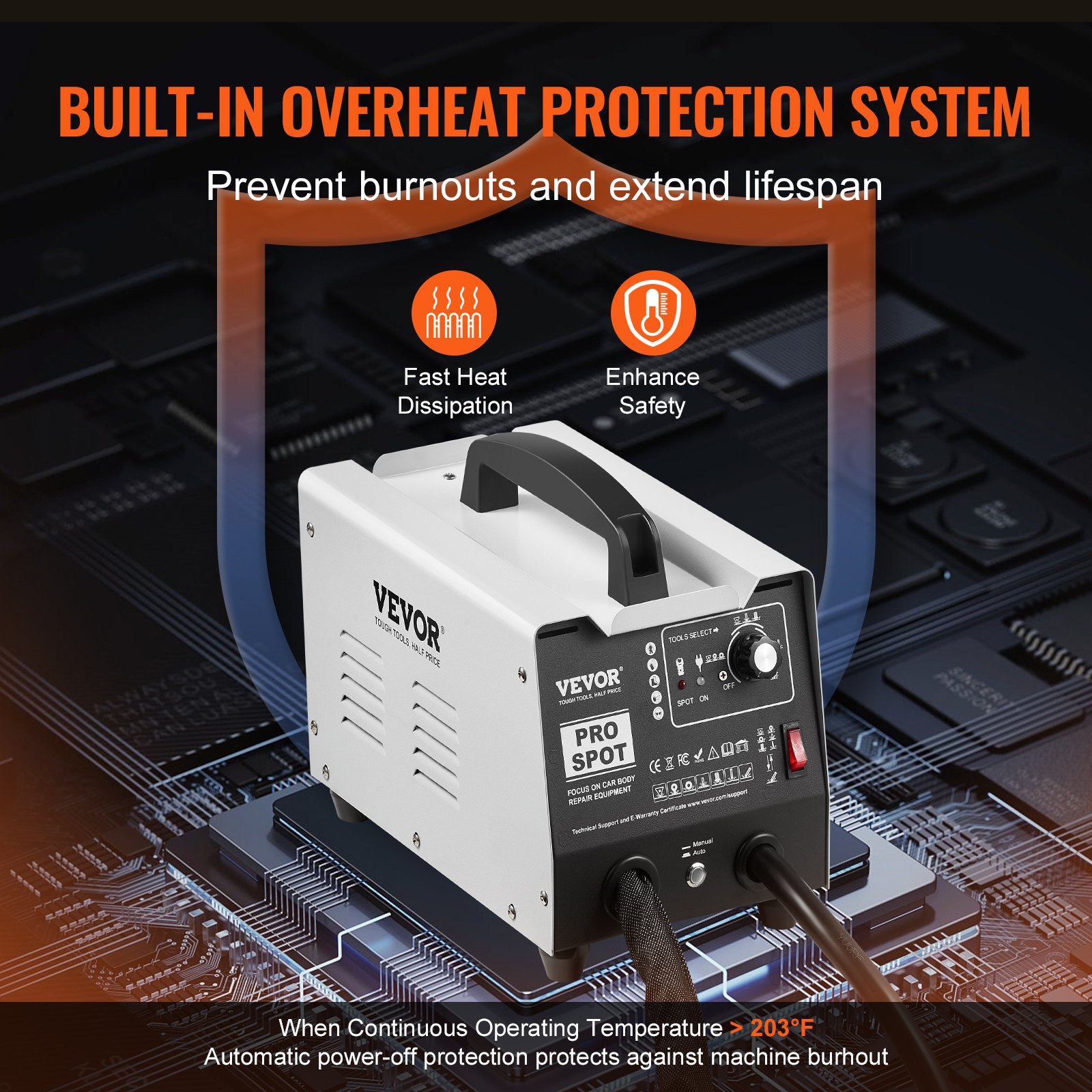 VEVOR Izvlakač udubljenja, 1,8 kW točkasto zavarivanje, Izvlakač udubljenja s automatskim/ručnim zavarivanjem i 7 svestranih načina rada, točkasto zavarivanje karoserije automobila, za popravak udubljenja na automobilima i kamionima