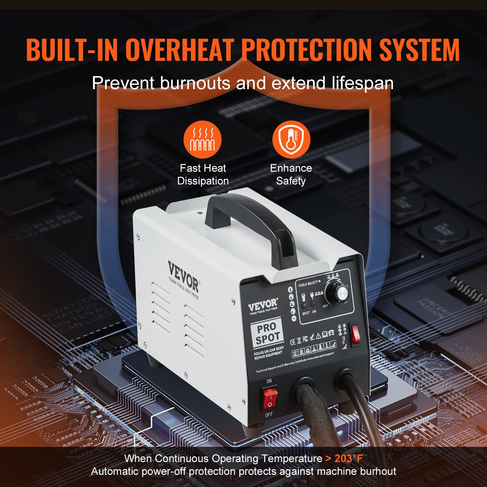 VEVOR Izvlakač udubljenja, Uređaj za točkasto zavarivanje karoserije automobila za uklanjanje udubljenja sa 7 načina zavarivanja i podesivom snagom, Izvlakač udubljenja od 1,8 kW za popravak udubljenja na automobilima i kamionima