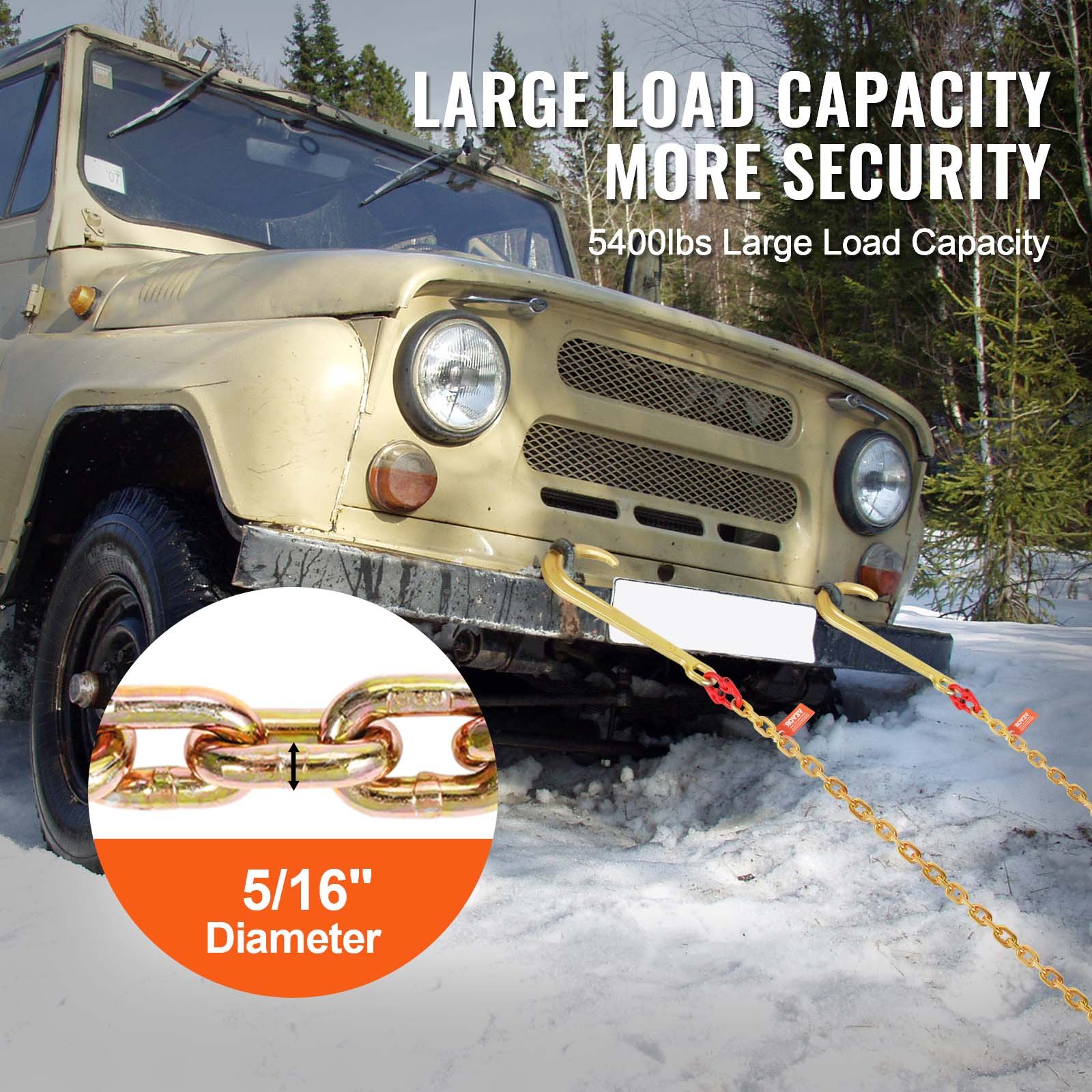 VEVOR J-kuka lanac, 2 komada 5/16″ x 6″ G80 15″ dugi lanac za vuču J-kuke s RTJ skupnim kukama i hvataljkama, radno opterećenje 5400 lbs, lanac za teška transportna vozila za vuču prikolica