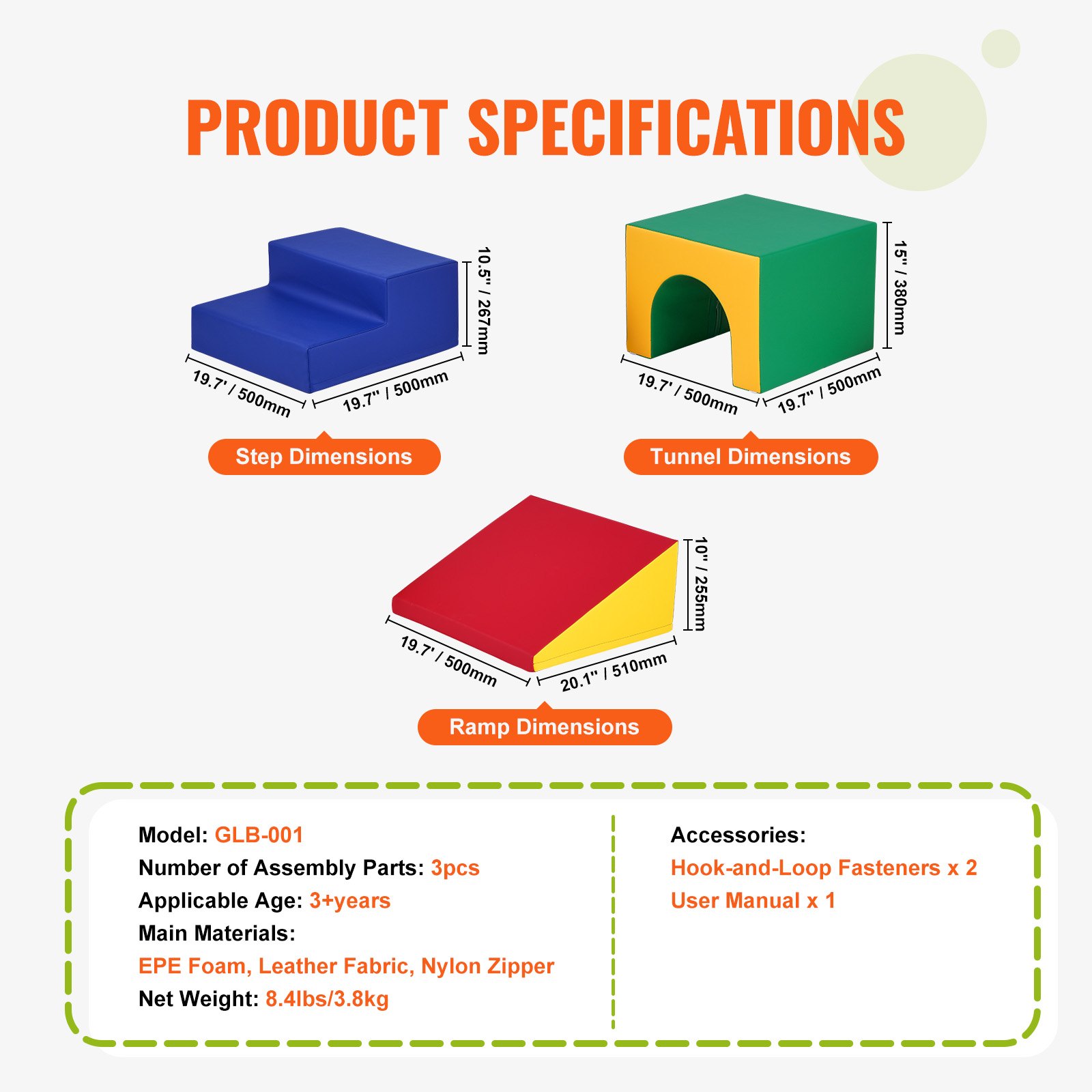 VEVOR Jednostruki tunel za penjanje, Set za igru ​​za malu djecu, Pjenasti blokovi za penjanje za malu djecu, Dječji tunelski labirint sa stepenicama i rampom, Unutarnja oprema za malu djecu i predškolce, 3 dijela